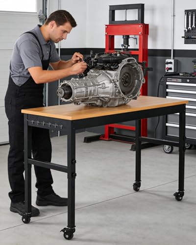 - Ergonomic Height Adjustment: Tailor the workbench to your height or specific task needs. With its 3-level height adjustment function, the work surface can be easily set anywhere from 29.5 inches to 37.4 inches high. This range accommodates different working postures, whether you prefer to stand, use a stool, or require a specific height for detailed work, making it suitable for various users and projects in garage, workshop, or home office settings.