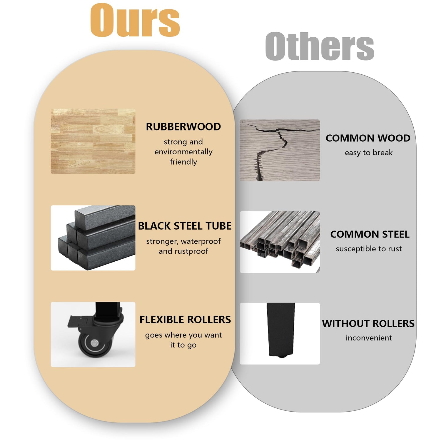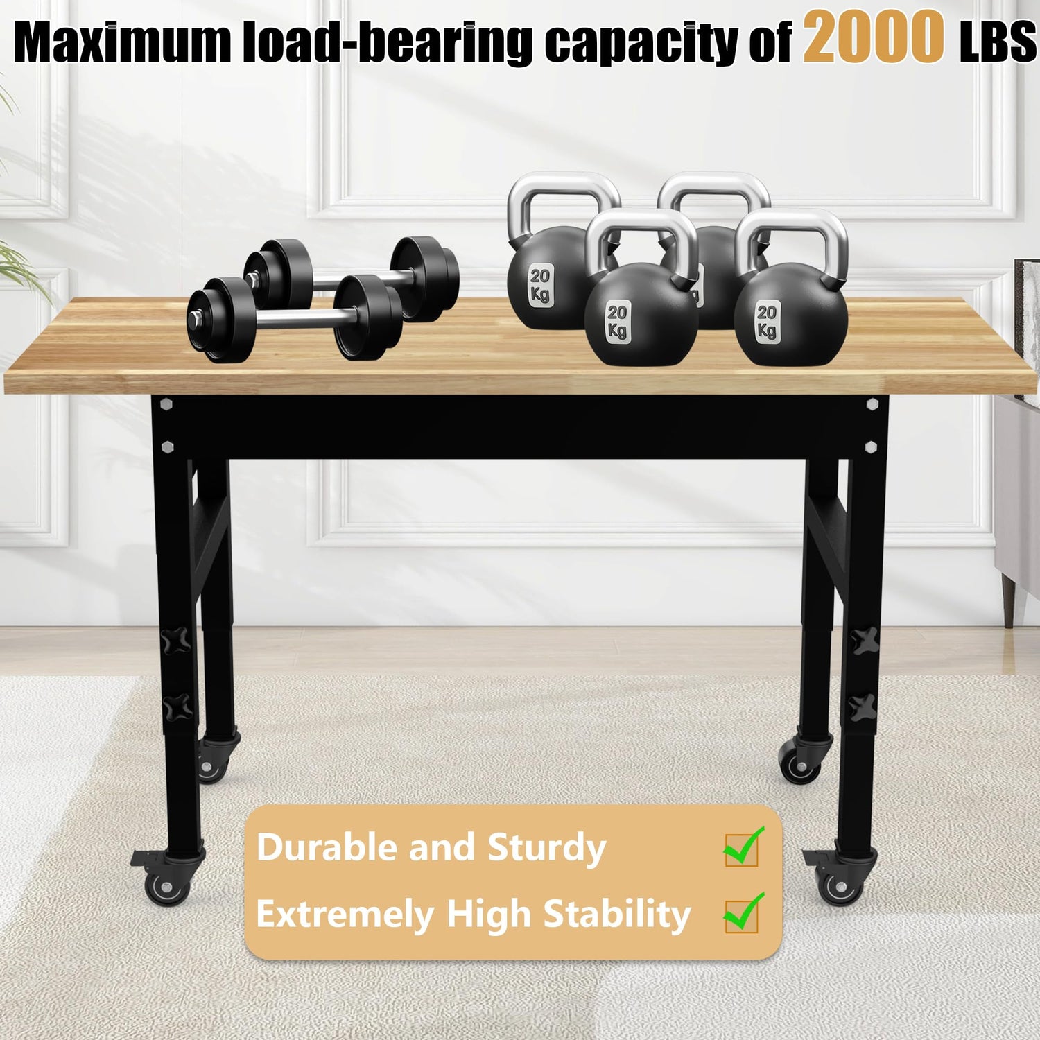 1"thick oak board as table top, strong and durable, can support up to 2000 lbs.