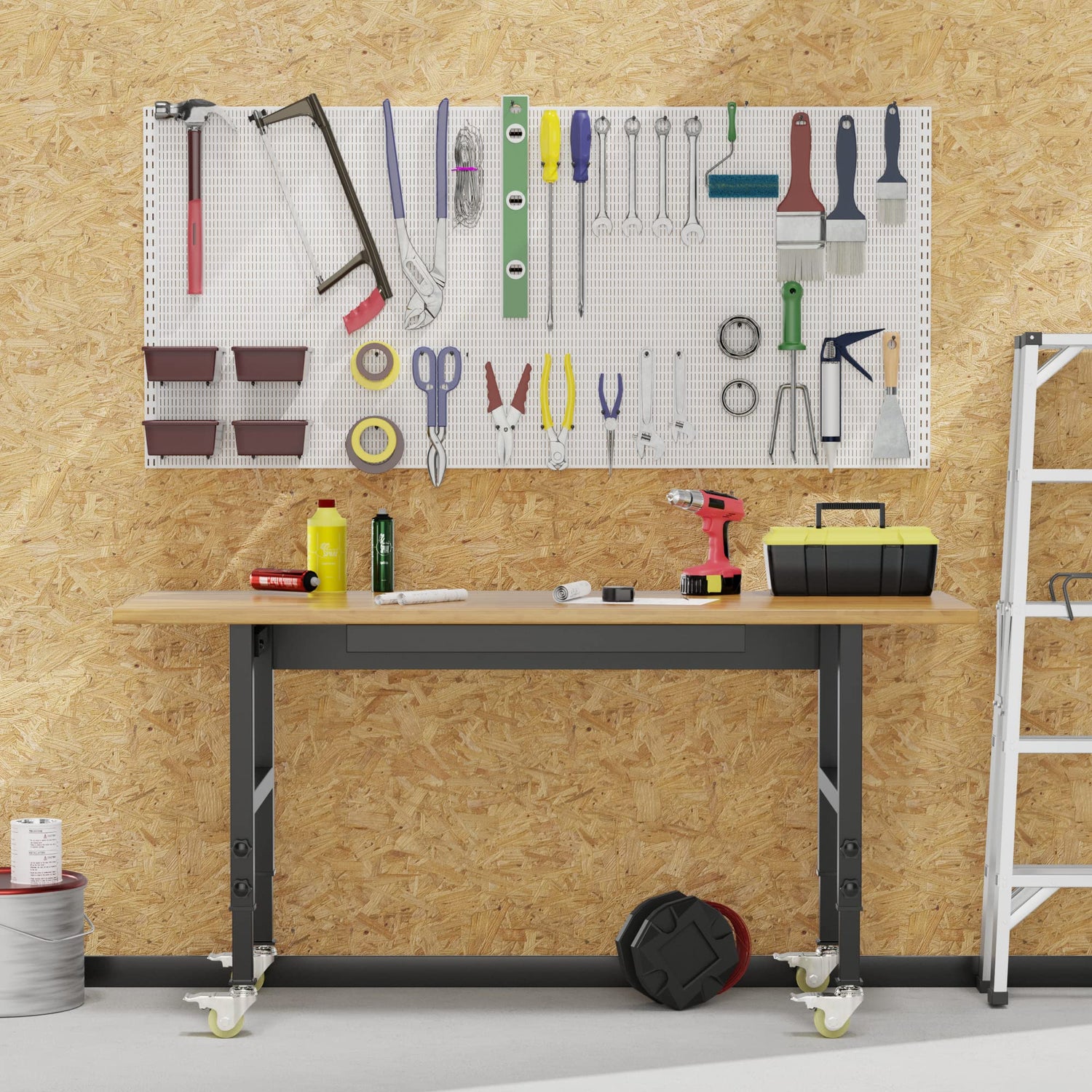 Sturdy and Reliable: Crafted with durability in mind, this workbench features a robust rubber wood top that can withstand the toughest tasks.