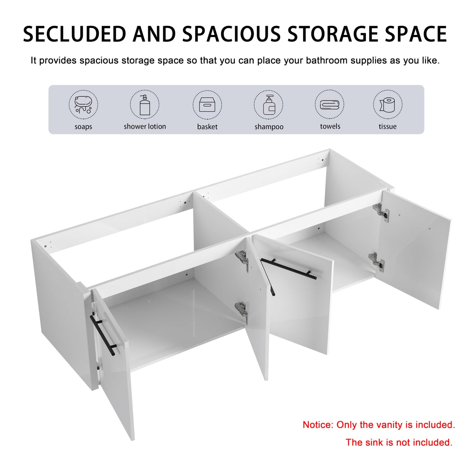60" Bathroom Vanity without Sink, 60 Inch Floating Bathroom Vanity Cabinet, Wall Mounted Vanity without Top, Modern Bathroom Vanity with 4 Soft-Closing Doors, Large Bathroom Vanity Storage Cabinet