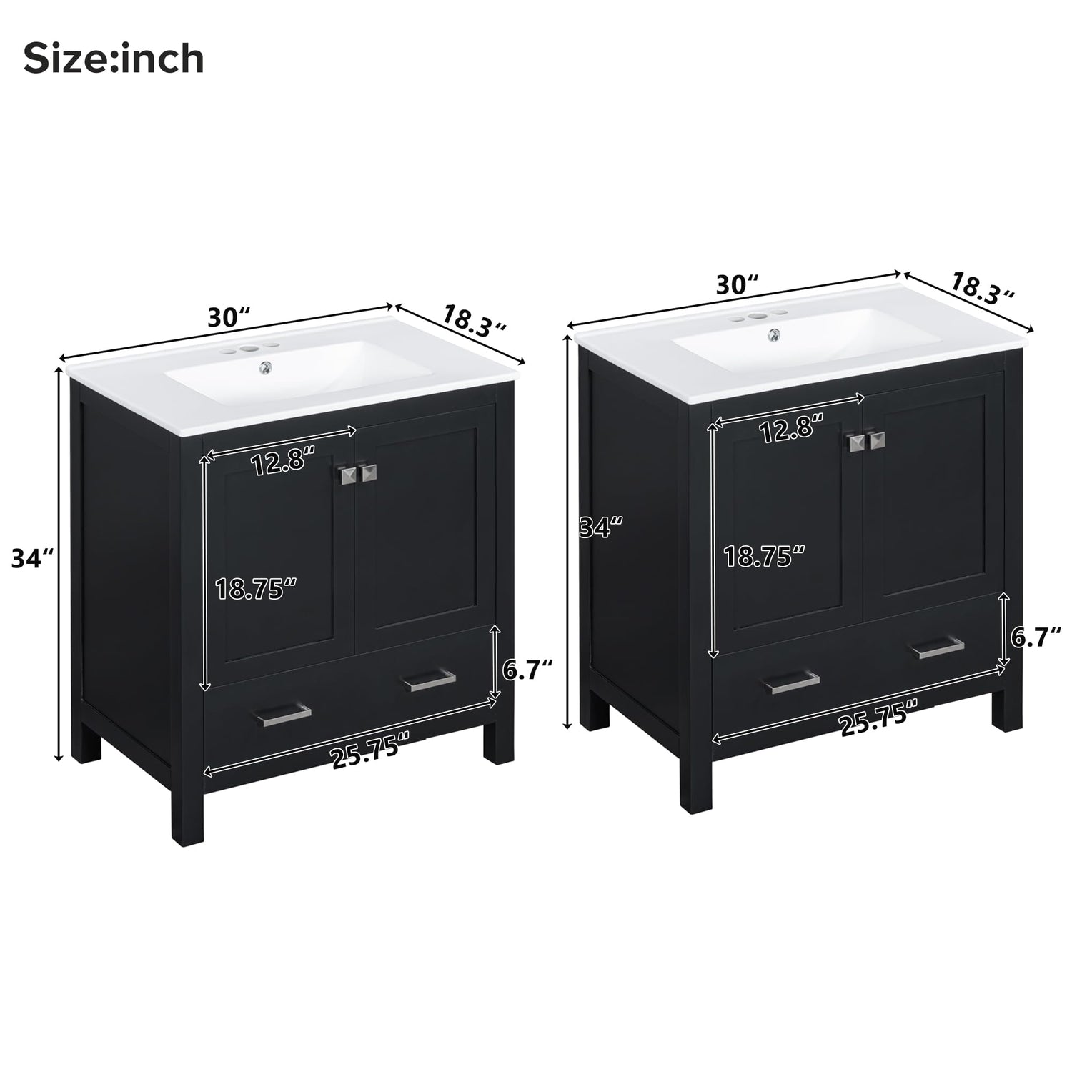 - [Stylish 60" Bathroom Vanity with Double Sink]: Our bathroom cabinet has smooth lines, modern design, stylish handle and complements the white ceramic sink. This set includes two 30 inch units that can be combined into a 60 inch vanity or used separately, providing flexibility to accommodate your bathroom layout. The combination of style and functionality creates an attractive and aesthetically pleasing atmosphere.