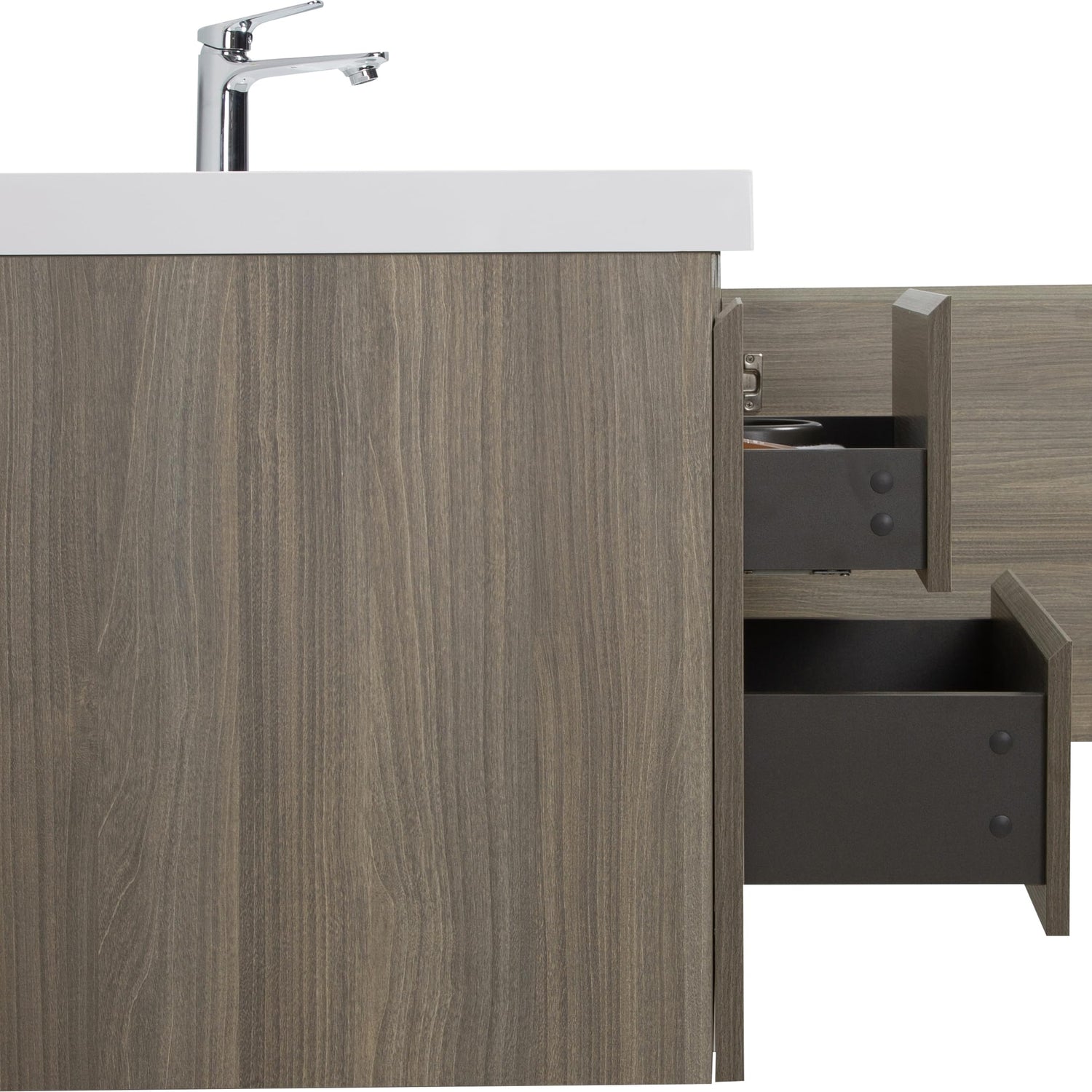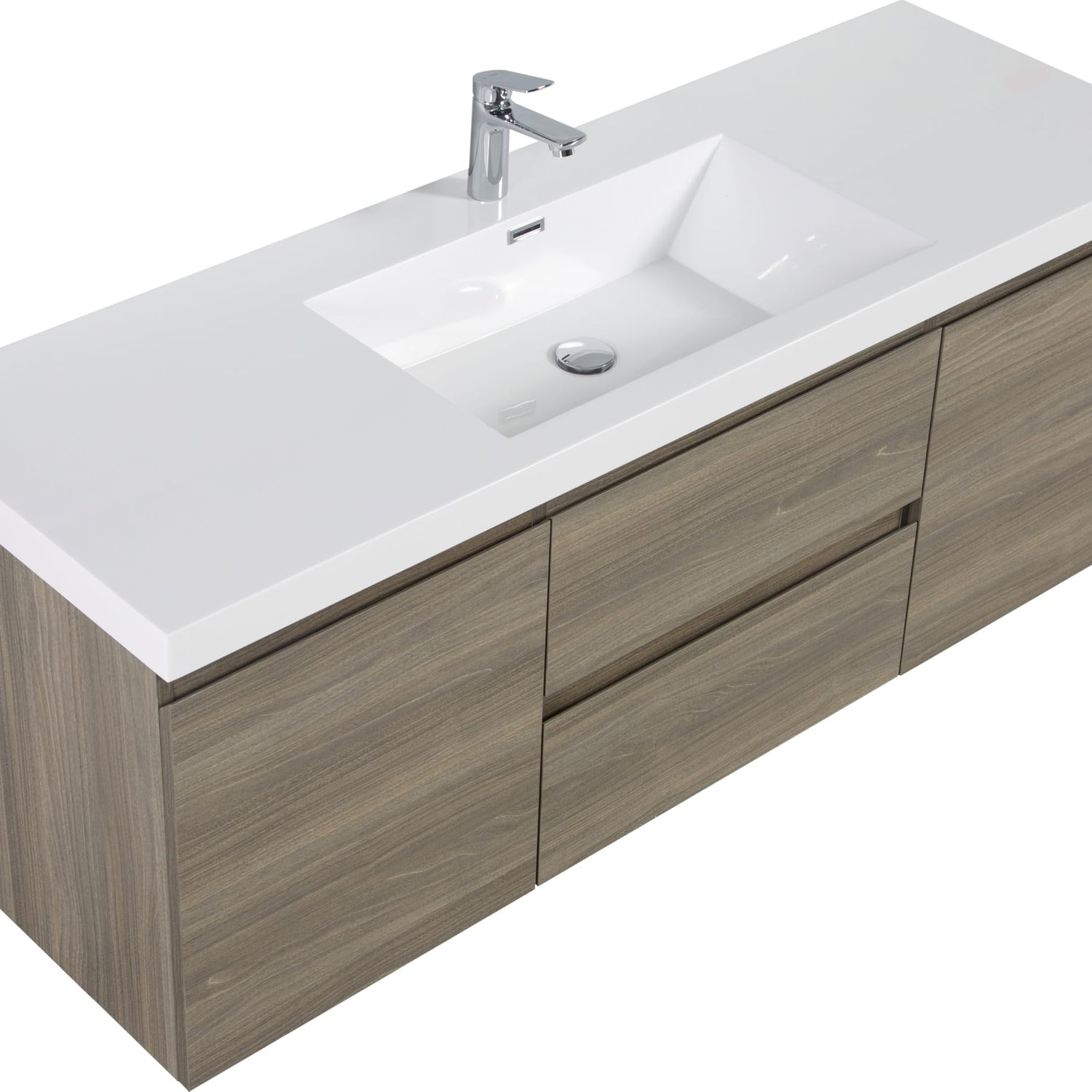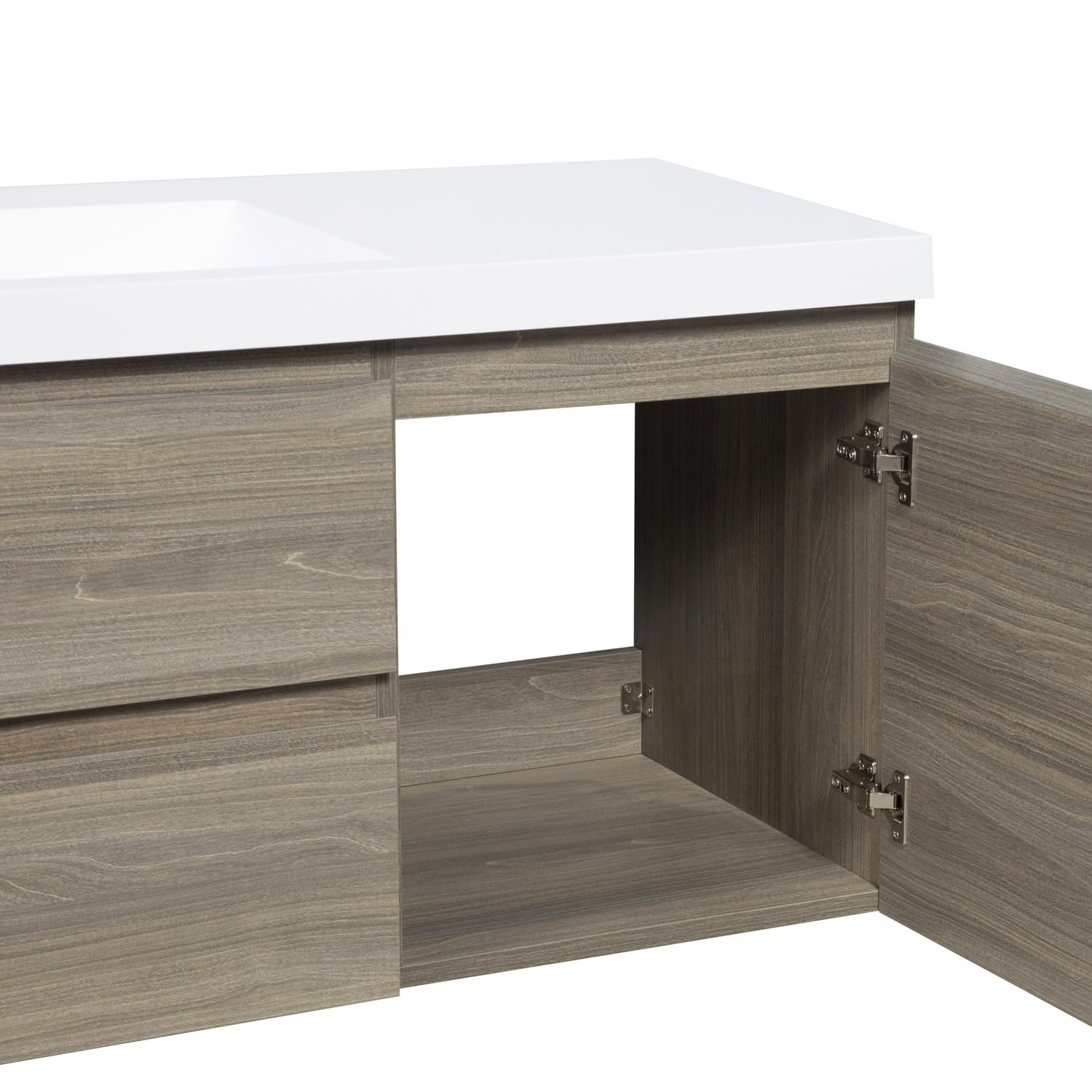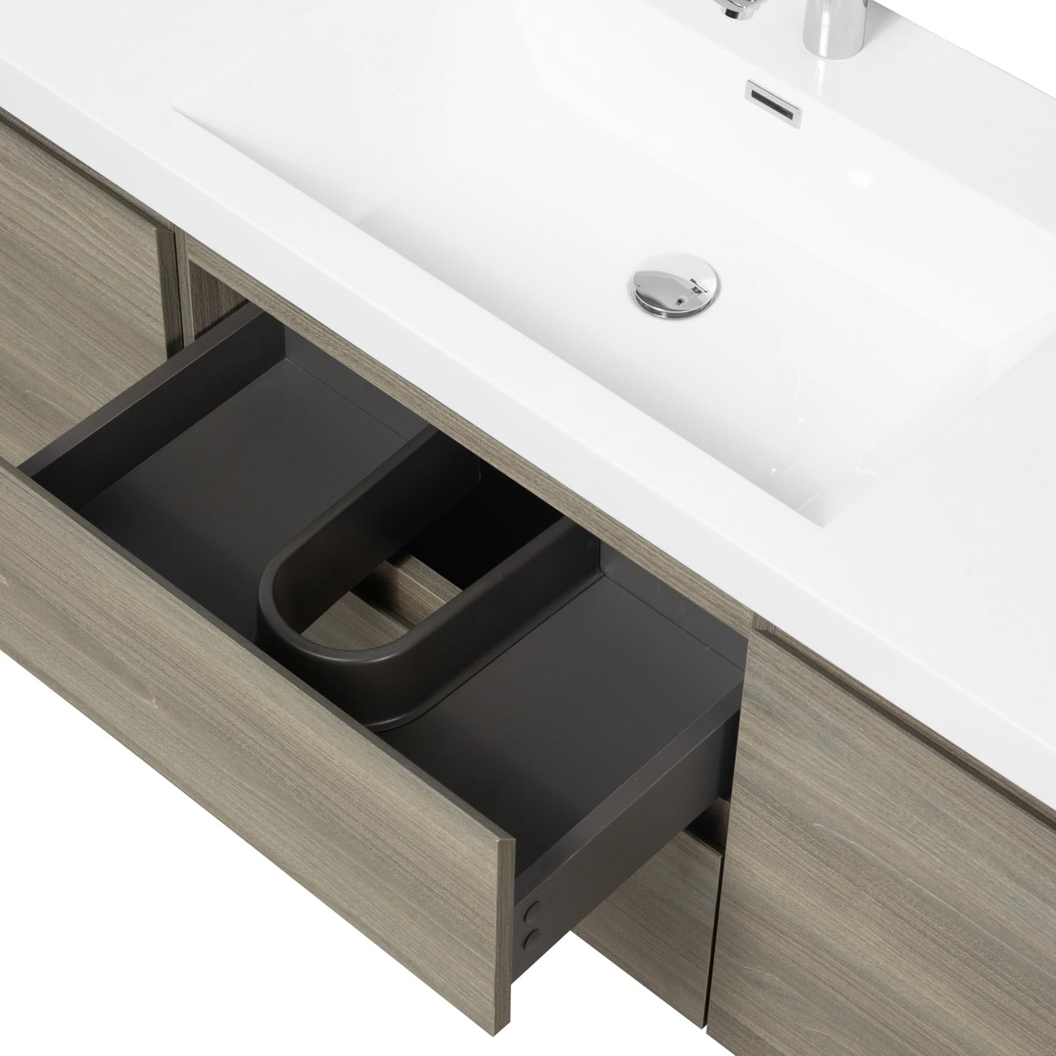 60" Floating Bathroom Vanity with Single Sink, Ash Grey, 2 Drawers, 2 Doors, Resin Top Basin,Easy to Install,for Bathroom,60 Bathroom Vanity,Floating Vanity Bathroom,Bathroom Sink Cabinet