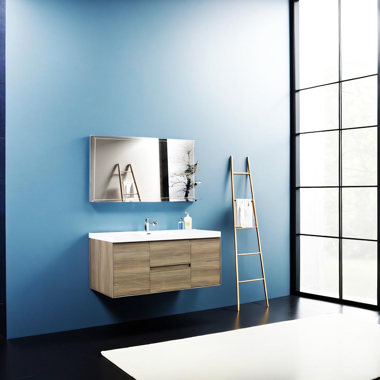 - Clean and Functional: Enhance your bathroom with this space-saving, wall-mounted vanity to neatly organize cosmetics and other essentials. Its modern, minimalist design enhances the aesthetics of your space while maximizing functionality.