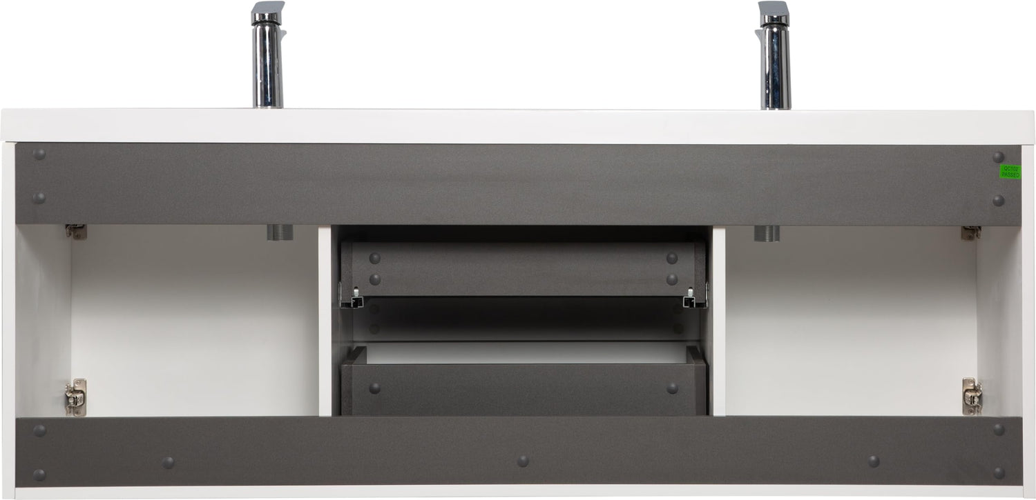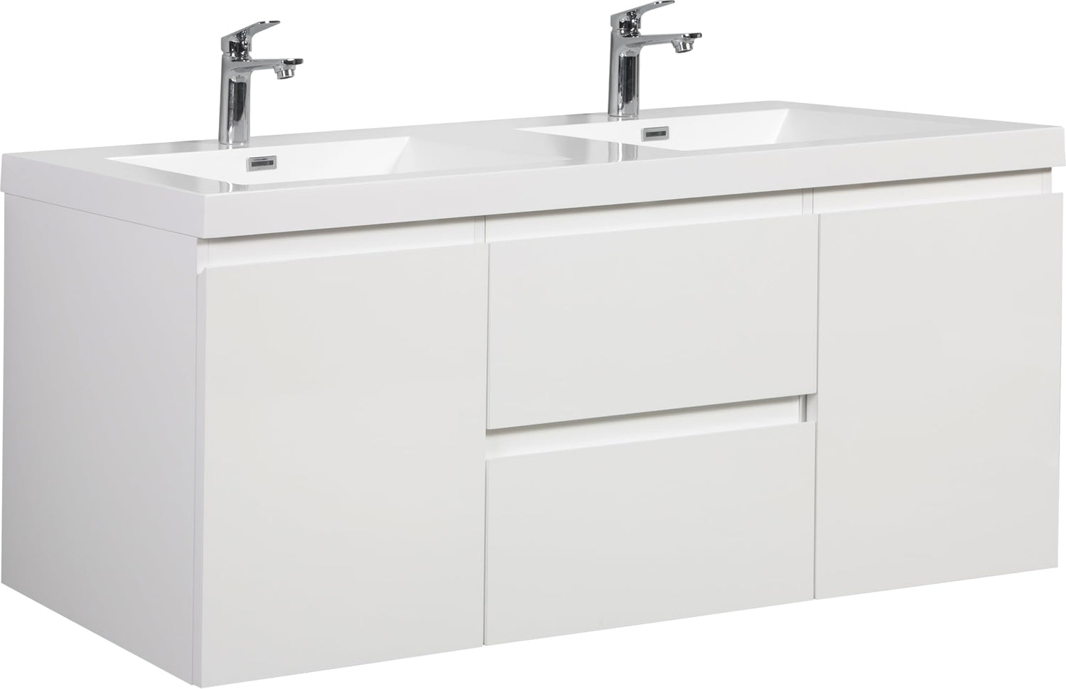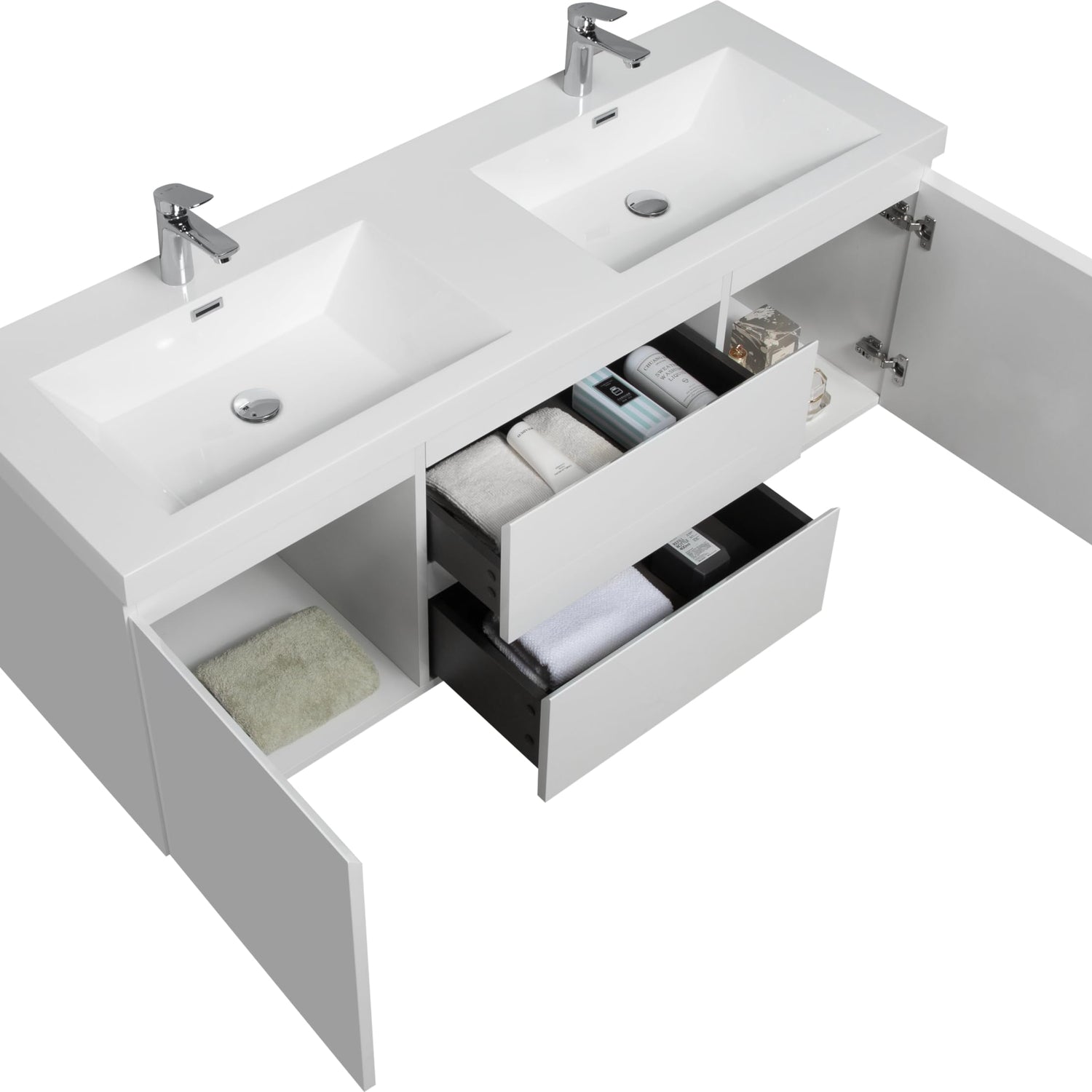60" Floating Bathroom Vanity with Sink, Modern Wall-Mounted Bathroom Storage Vanity Cabinet with Double Resin Top Basin and Two Soft Close Drawers, Glossy White