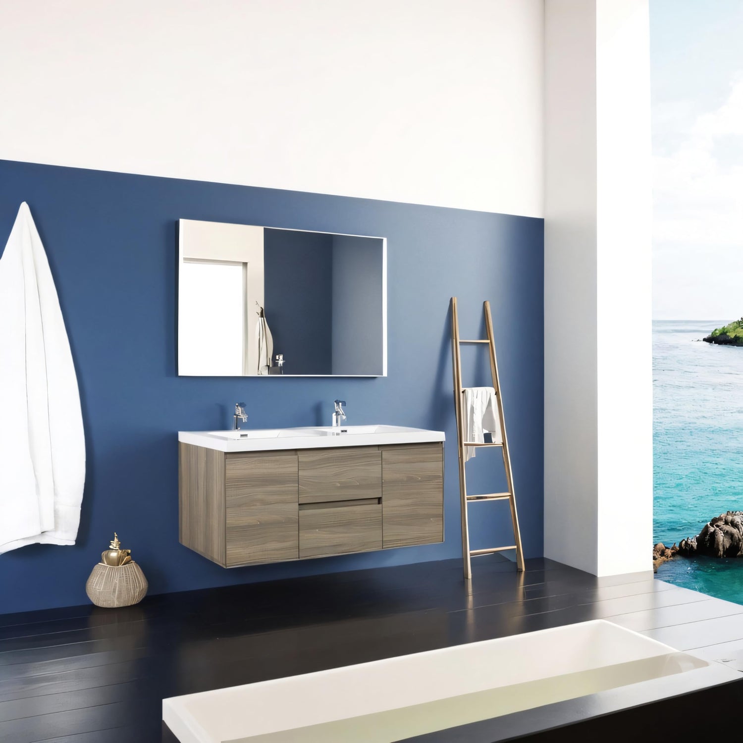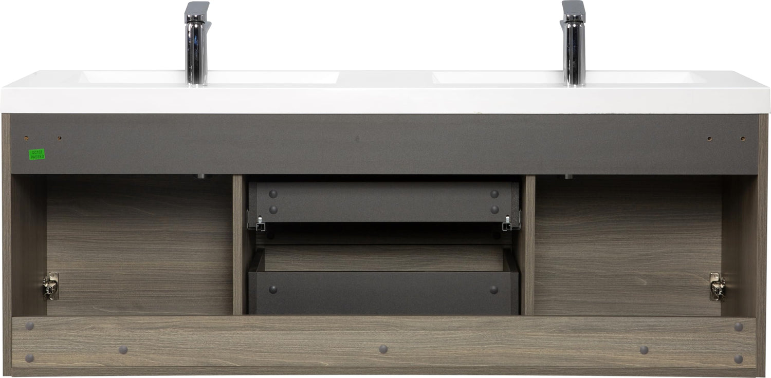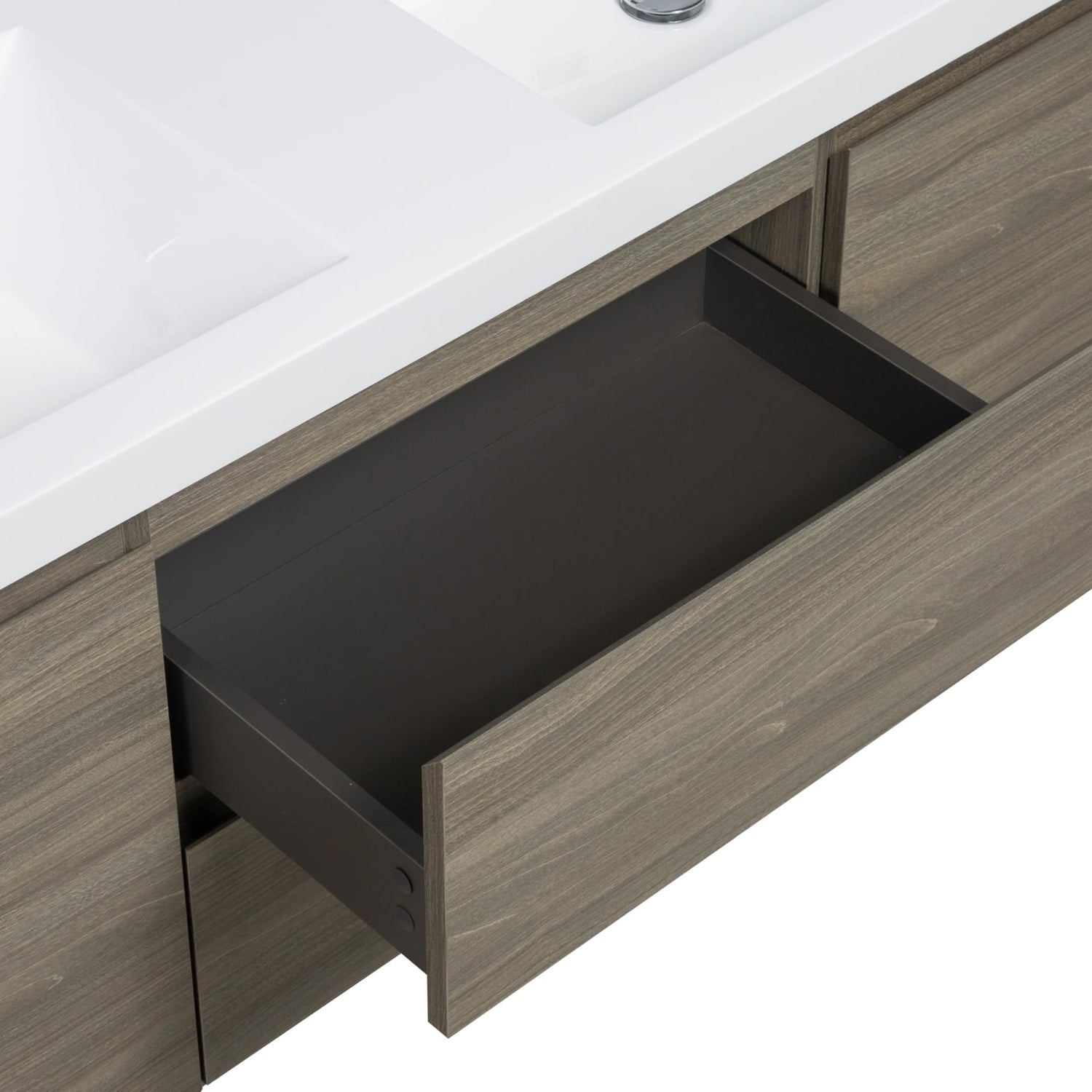60 Inch Bathroom Vanity Double Sink, Modern Wall-Mounted Bathroom Storage Vanity Cabinet with Double Resin Top Basins and Soft Close Drawers, Ash Grey,60 Bathroom Vanity,Floating Vanity Bathroom