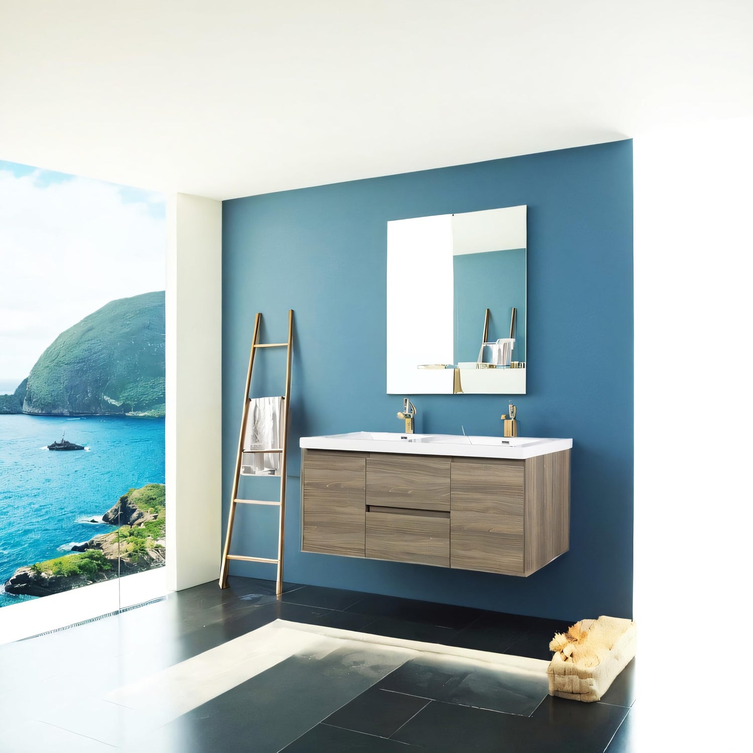 - Clean and Functional: Enhance your bathroom with this space-saving, wall-mounted vanity to neatly organize cosmetics and other essentials. Its modern, minimalist design enhances the aesthetics of your space while maximizing functionality.