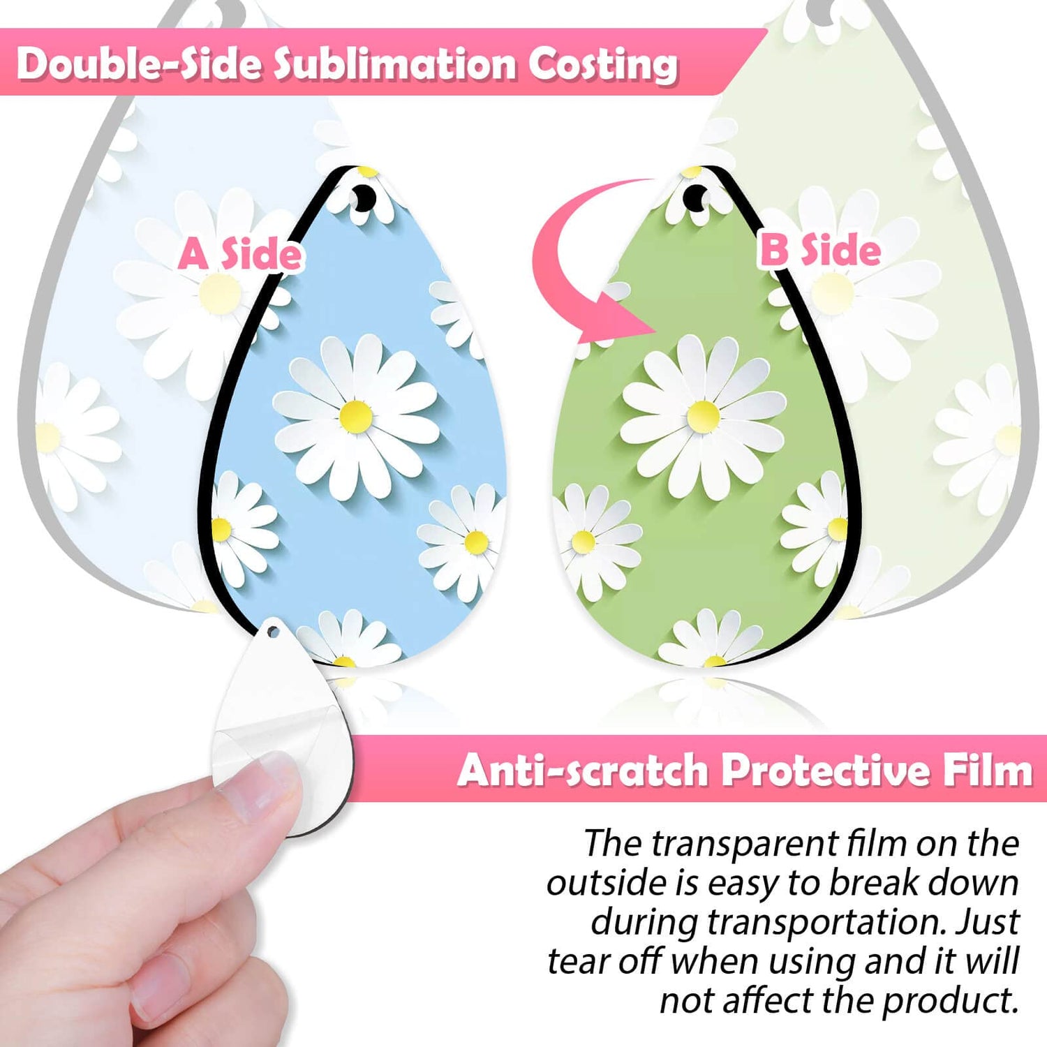 - High-Quality Material: Double-sided sublimation printing earrings are made of Medium Density Fiberboard material, bright surface and good hardness, and easy to heat press. Earring Hooks and Jump Rings are made of quality metal, durable and lightweight, comfortable for you to wear, and not easy to break.