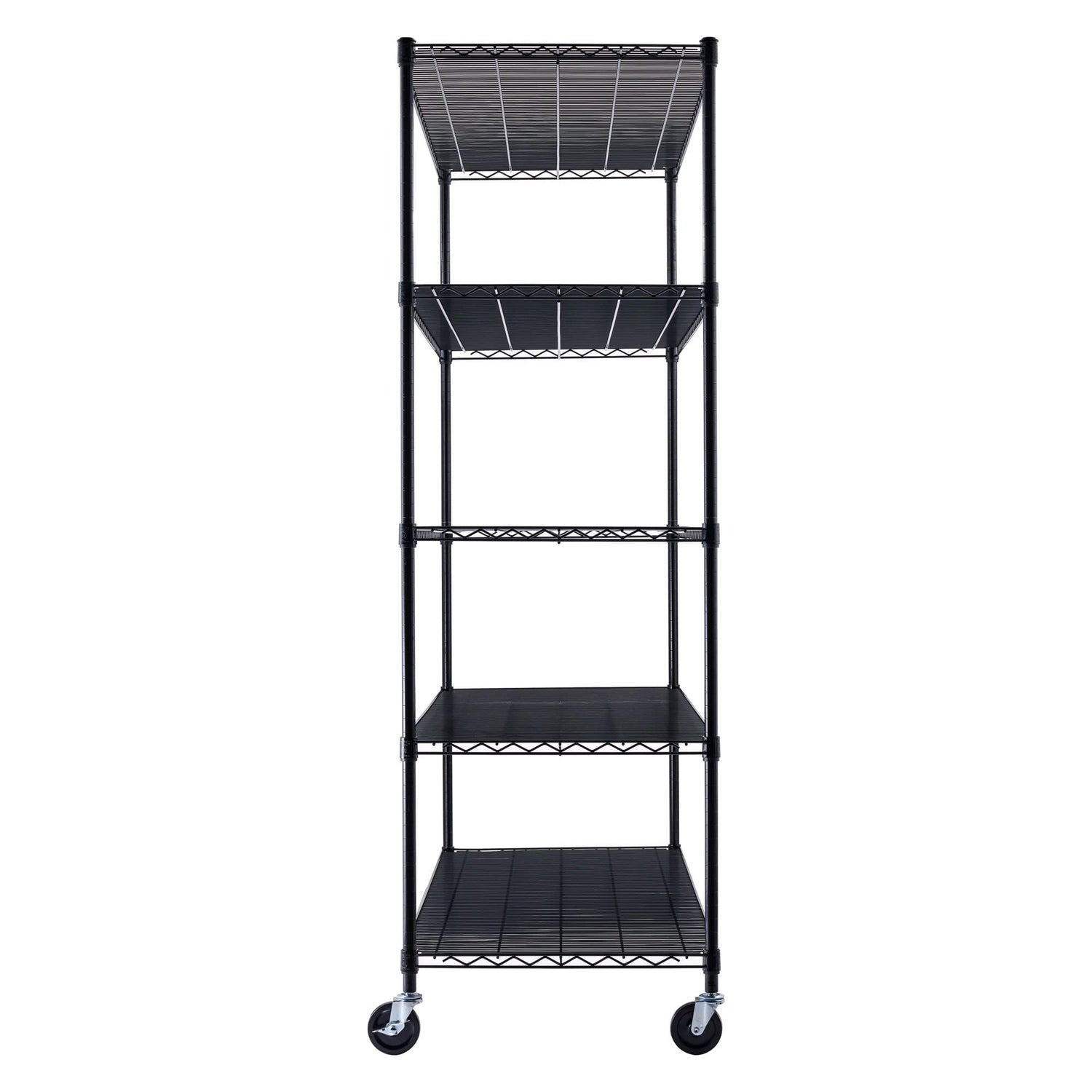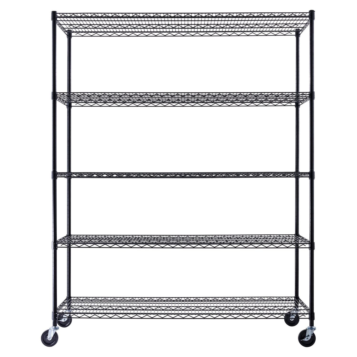 - ★HEAVY DUTY AND DURABLE★ Our 5-Tier Wire Shelving unit is constructed with high quality steel and designed to be heavy duty. On LEVELING FEET, the total system capacity is 3,000 lbs (600 lbs per shelf). On CASTER WHEELS, the total system capacity is 600 lbs (120 lbs per shelf). The sturdy construction of the unit ensures that, on leveling feet, it can accommodate even the heaviest items with ease, providing a reliable storage solution that you can trust.