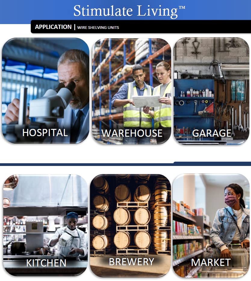 - ★FLEXIBLE USAGE★ Our Stimulate Living Wire Shelving is designed to be flexible and adaptable to a wide range of settings. It can be used in warehouses to store heavy equipment, in kitchens to hold cooking utensils, in garages to organize tools, in hospitals and laboratories to store medical supplies, in offices to keep files and documents, in retail stores to display merchandise, in restaurants to store kitchenware, in industrial and factory spaces to hold raw materials, and more.