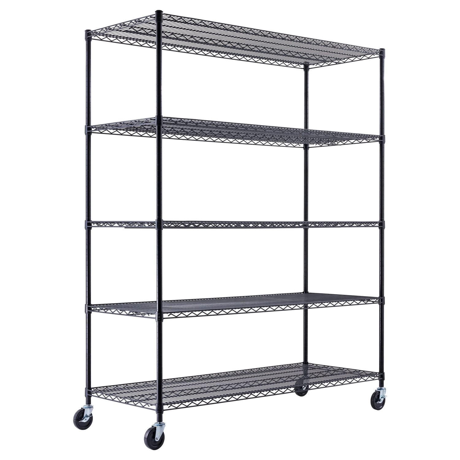 60" x 24" x 72" Black 5-Tier Wire Shelving NSF 3000 LBS Max Capacity Heavy Duty Steel Storage Rack for Restaurant, Warehouse, Commercial, Industrial,