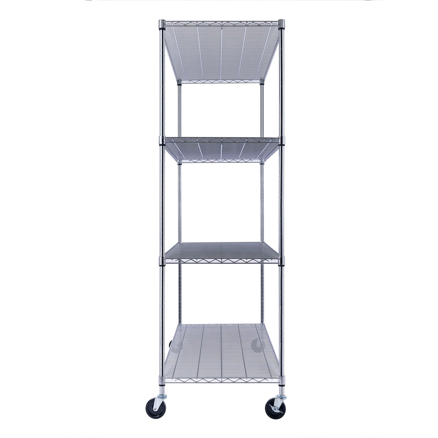 - ★HEAVY DUTY AND DURABLE★ Our 4-Tier Wire Shelving unit is constructed with high quality steel and designed to be heavy duty. On LEVELING FEET, the total system capacity is 2,400 lbs (600 lbs per shelf). On CASTER WHEELS, the total system capacity is 480 lbs (120 lbs per shelf). The sturdy construction of the unit ensures that, on leveling feet, it can accommodate even the heaviest items with ease, providing a reliable storage solution that you can trust.