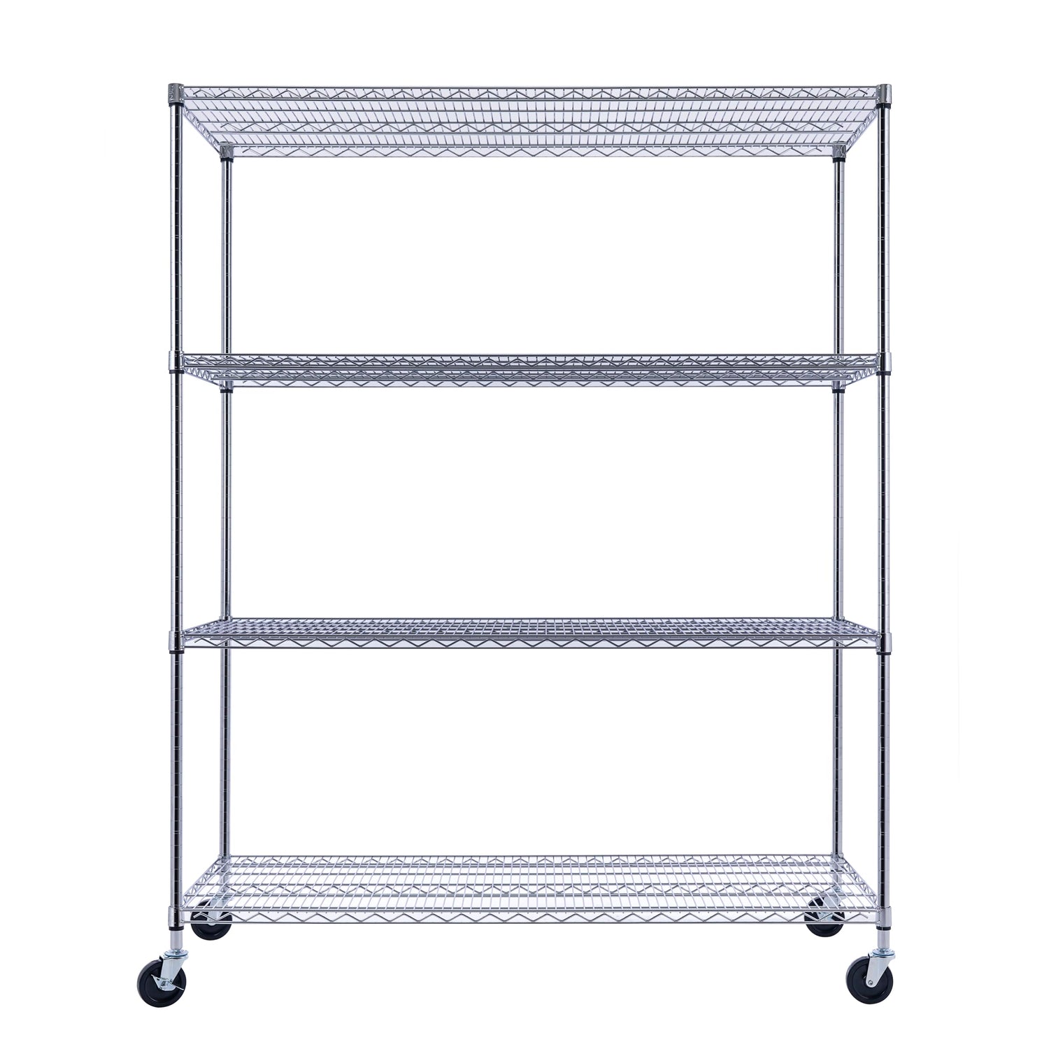 Heavy Duty and Durable. Get the Ultimate Solution for Heavy-Duty Storage With Our 60" W x 24" D x 72" H (77" H on Wheels) Wire Shelving Racks. Our Rack is Perfect for Commercial, Kitchen, Garage, Warehouse, Hospital, and Residential Uses with a Maximum Weight Capacity of 2,400 lbs.