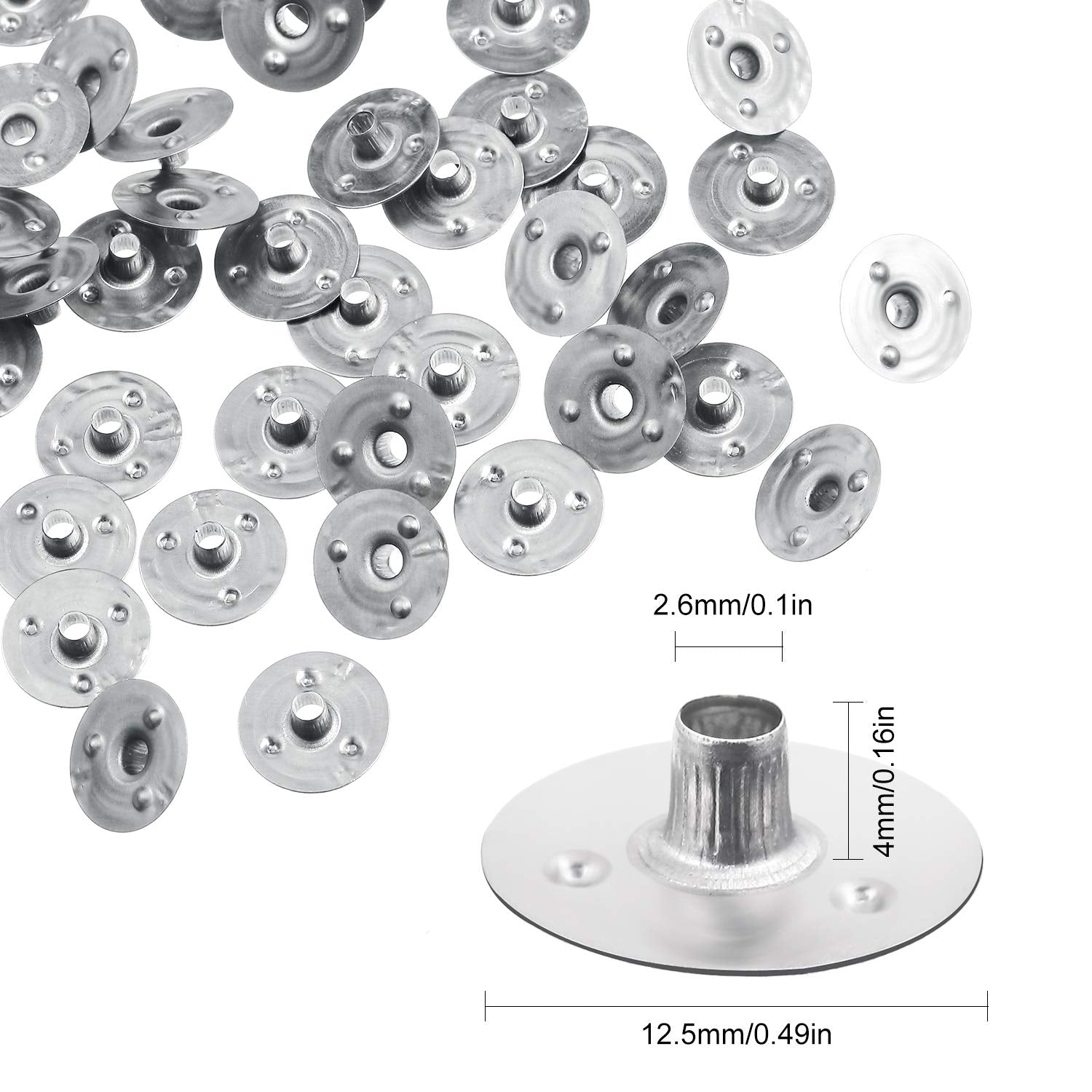 - Size: each candle wick sustainer tab measures approx. 12.5 mm/ 0.49 inches in diameter, the central hole of candle wick tab measures approx. 2.6 mm/ 0.1 inches, the neck's height is about 4 mm/ 0.16 inches