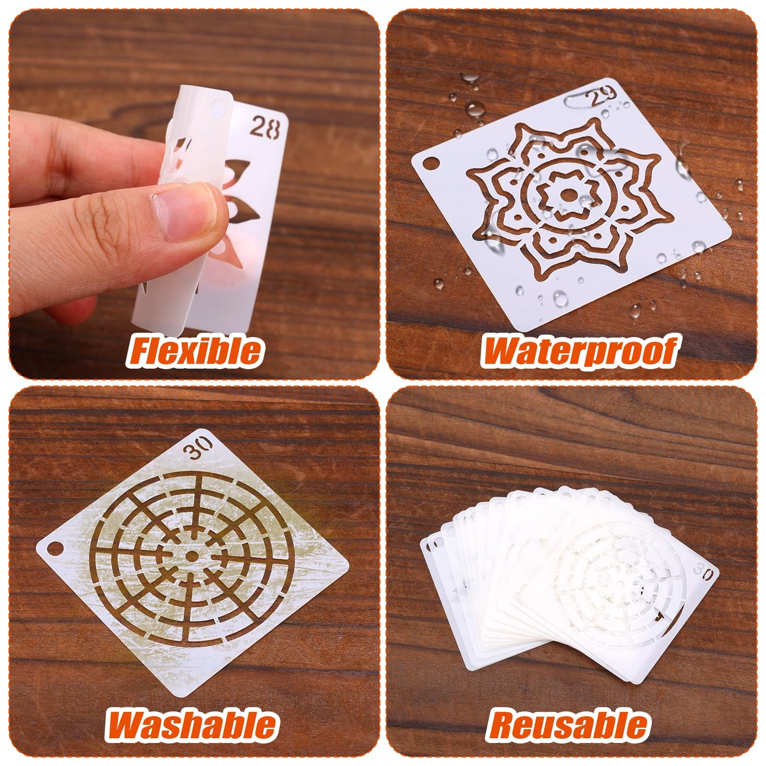 - Excellent Material: Our painting stencils are made of good quality PET material, which are durable, flexible, smooth edges, not easy to break, washable and reusable, can be used for a long time.