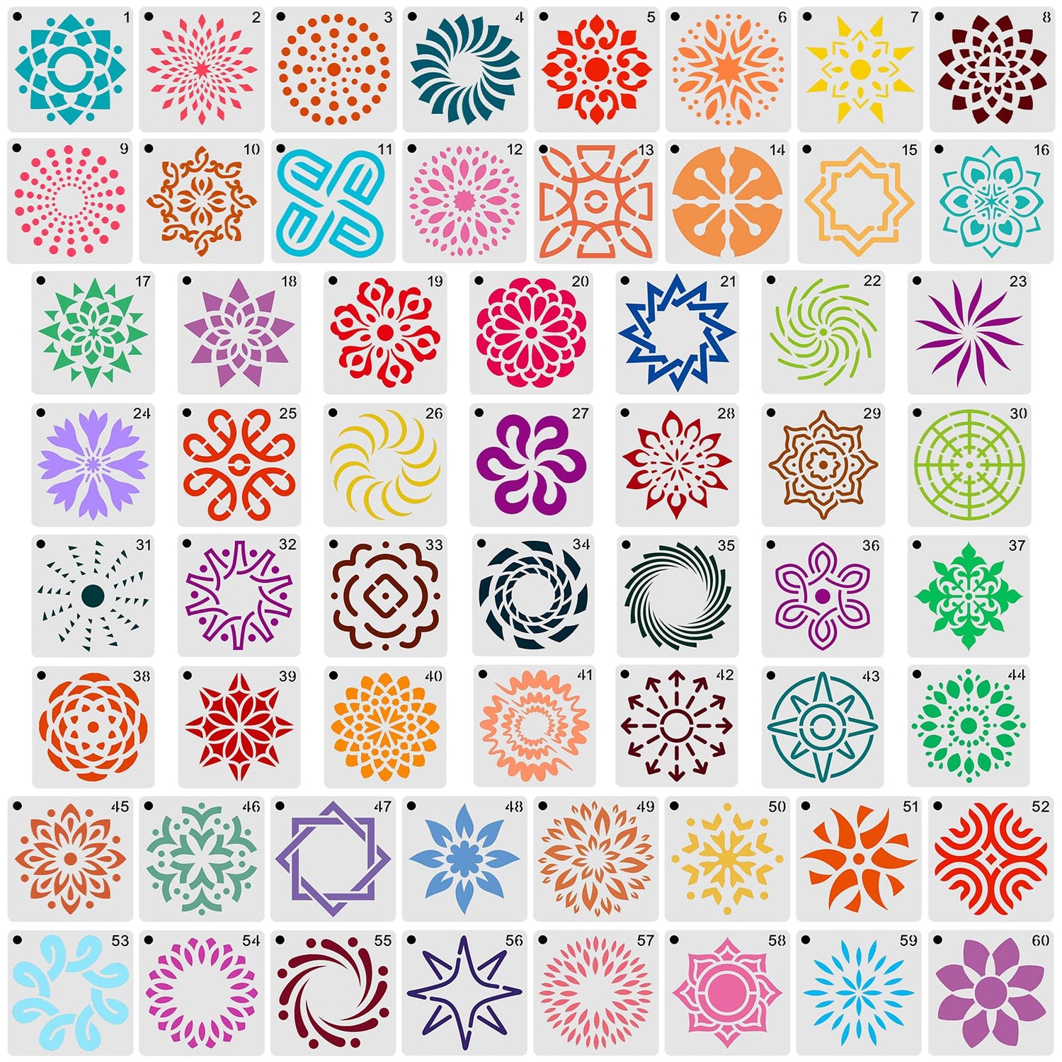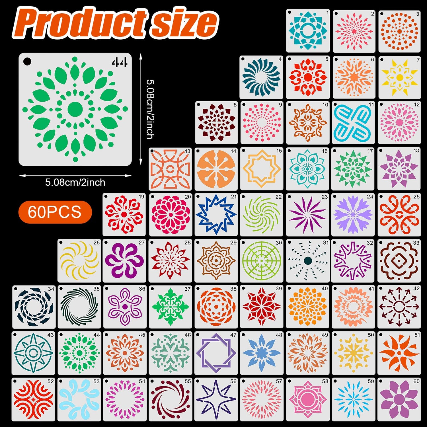 - Package Details: You will receive 60 pieces of mandala stencils for painting, and each stencils size is 5.08x5.08cm/2x2in, sufficient quantity can meet your painting needs.