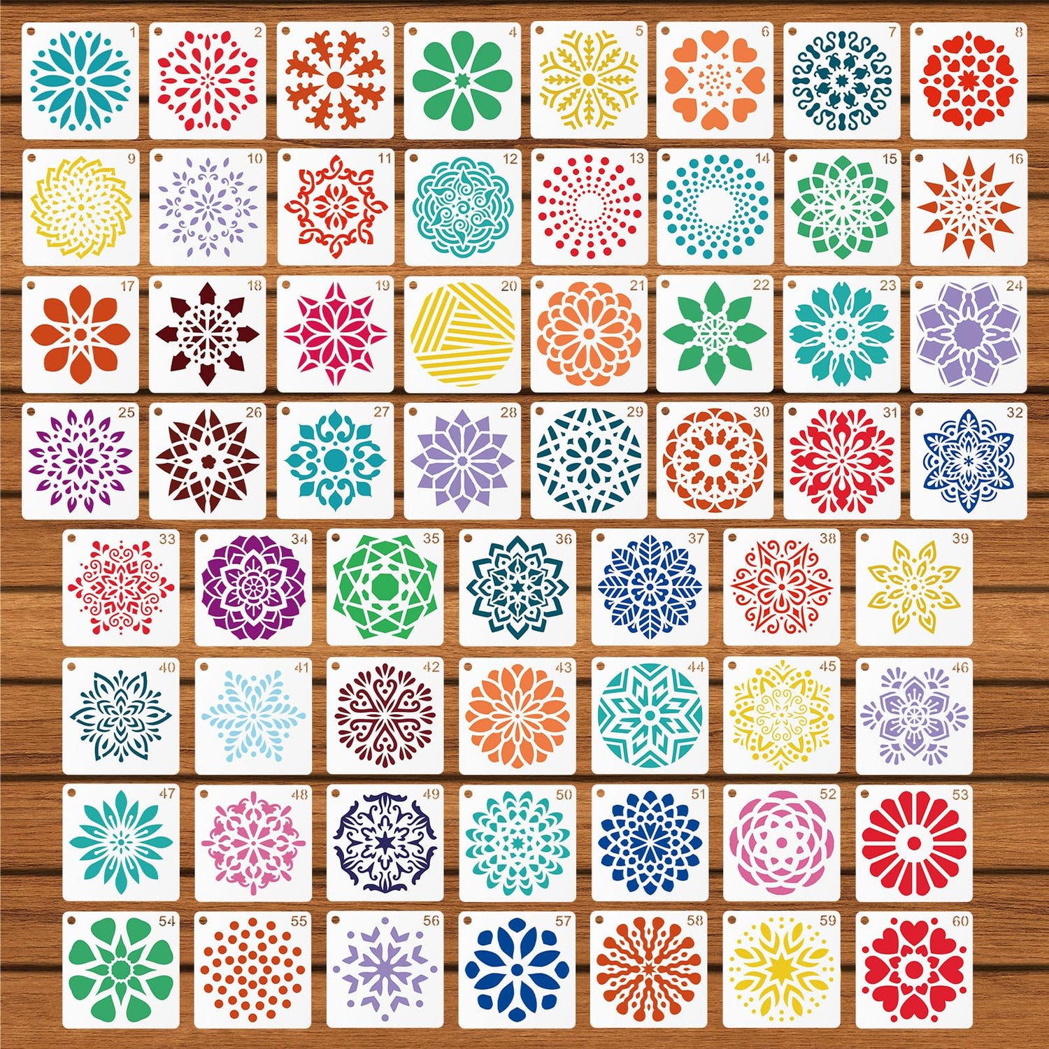- Package Includes: You will receive 60 unique mandala stencils in various designs, each measuring 5.08x5.08cm / 2x2in. This set provides a wide variety of patterns and a sufficient quantity to meet all your DIY and crafting needs.