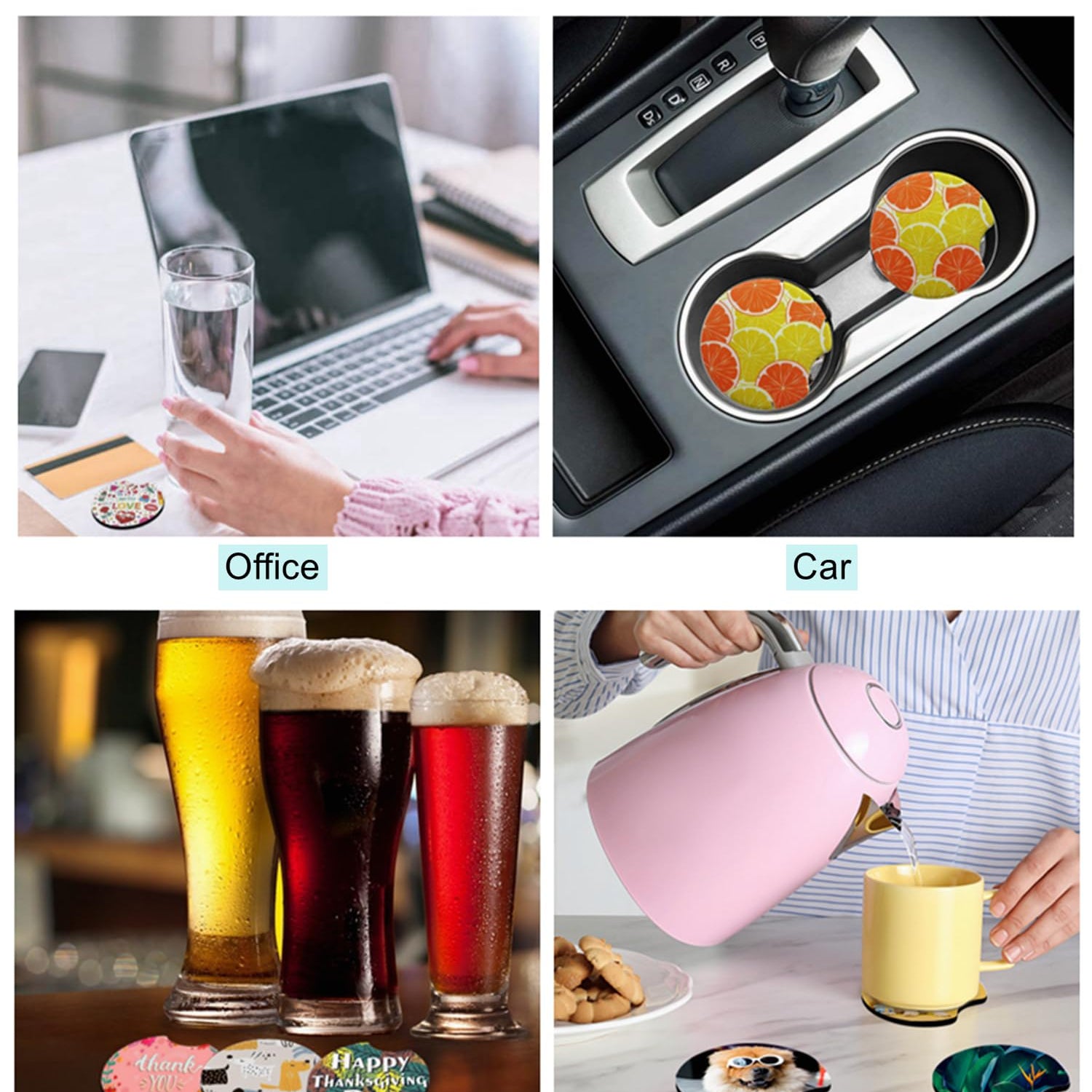 - Wide application: Sublimation coasters fit most of car cup holders to create unique car ornament, but also be used in kitchen, bedroom, or cafe to place coffee mugs, wine glasses, tea cups, and glass bottles well, which add a stylish touch to all setting.