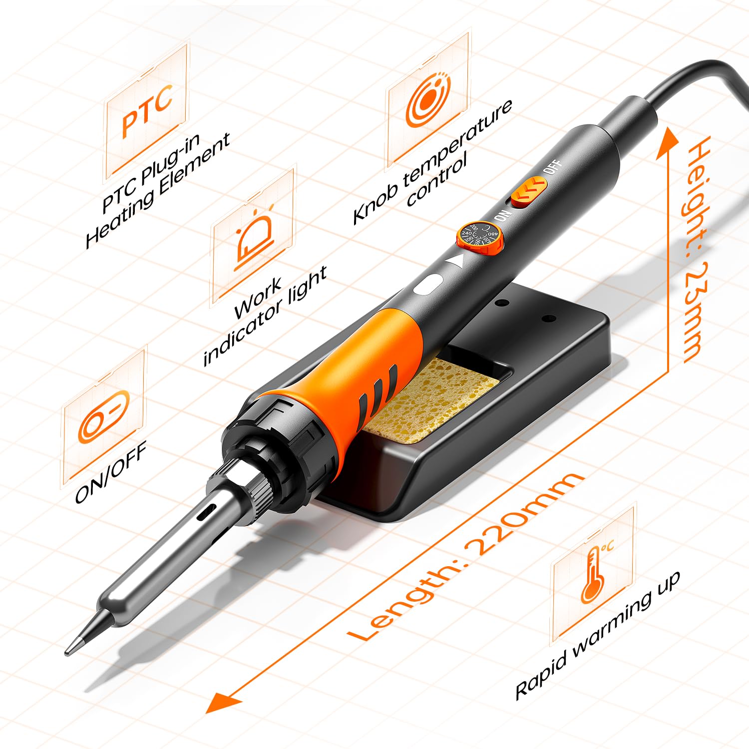 - 【Electronics Repair Made Easy】The Electric soldering iron is equipped with an on/off switch for energy-saving and safe soldering. It operates at 110V and 60W, with adjustable temperature control for quicker warm-up.