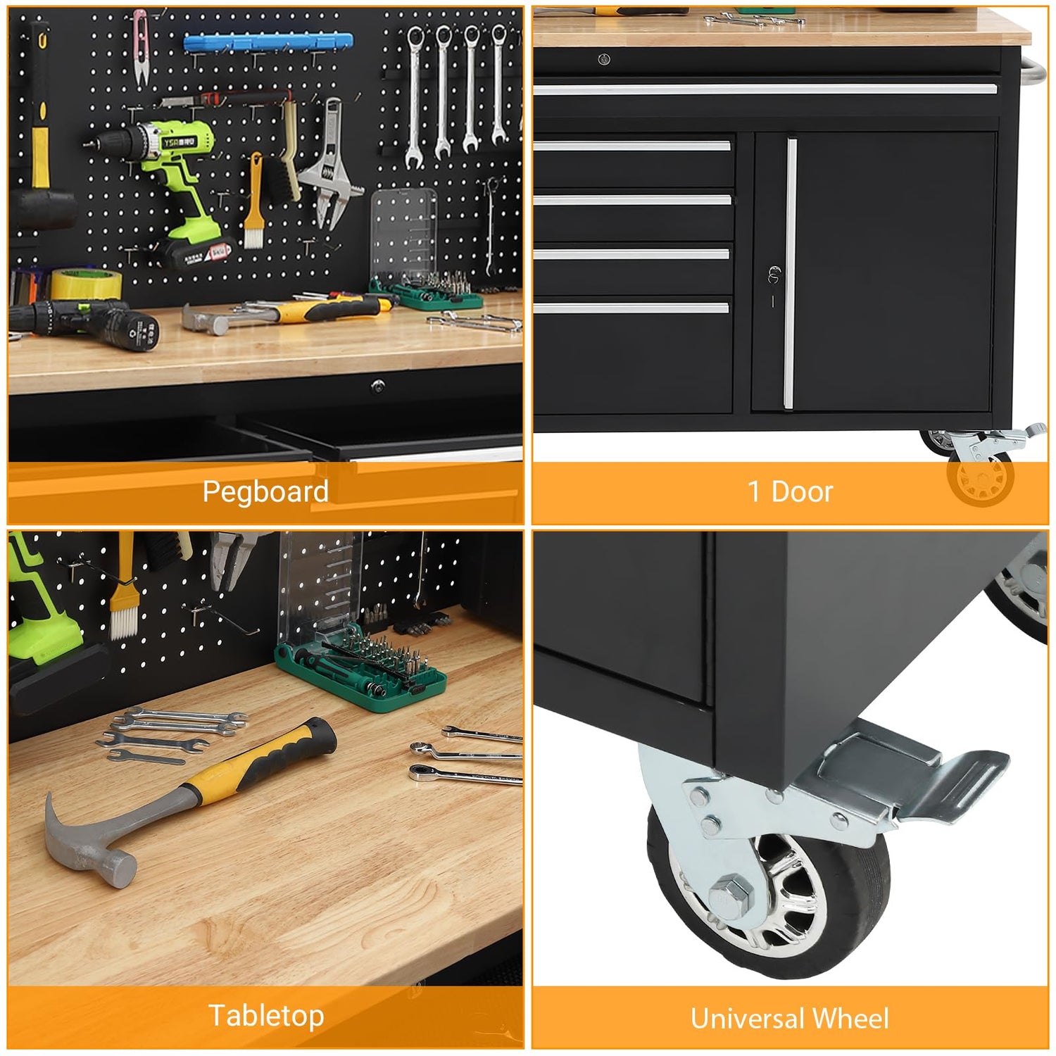 - 【Solid Rubber Wood Top】Enjoy a robust, spacious workbench with the solid rubber wood top, supporting a 1675 lbs load capacity. This rolling tool chest with wheels offers a durable surface for heavy-duty tasks, making it a reliable mobile workbench for garages, workshops, or offices needing versatile tool storage solutions.