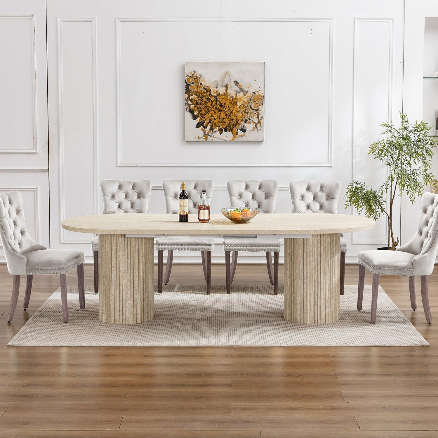 • 【Durable Kitchen Table Set for 10】The dining table set is made of high-quality MDF with sturdy wooden fluted base , designed for stability and long-lasting durability, ensuring reliable use for years. Whether for family meals or weekend gatherings with friends, this extentable dining room table set is the perfect choice.