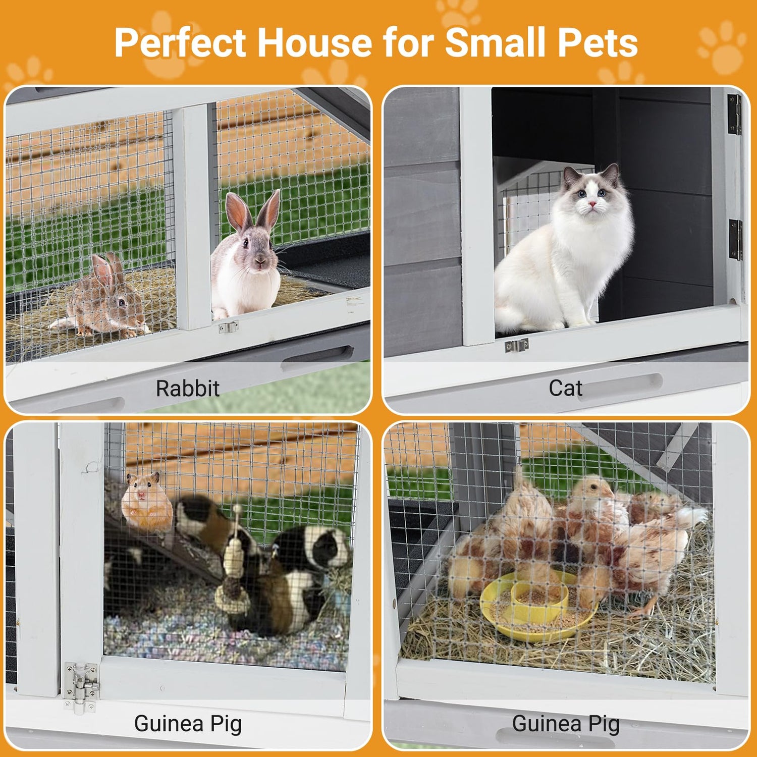 - 【DOUBLE-LAYER DESIGN】— This two-tier rabbit hutch outdoor provides extra space for your pet, encouraging jumping and exploration to satisfy their natural instincts and offering more fun and activity.