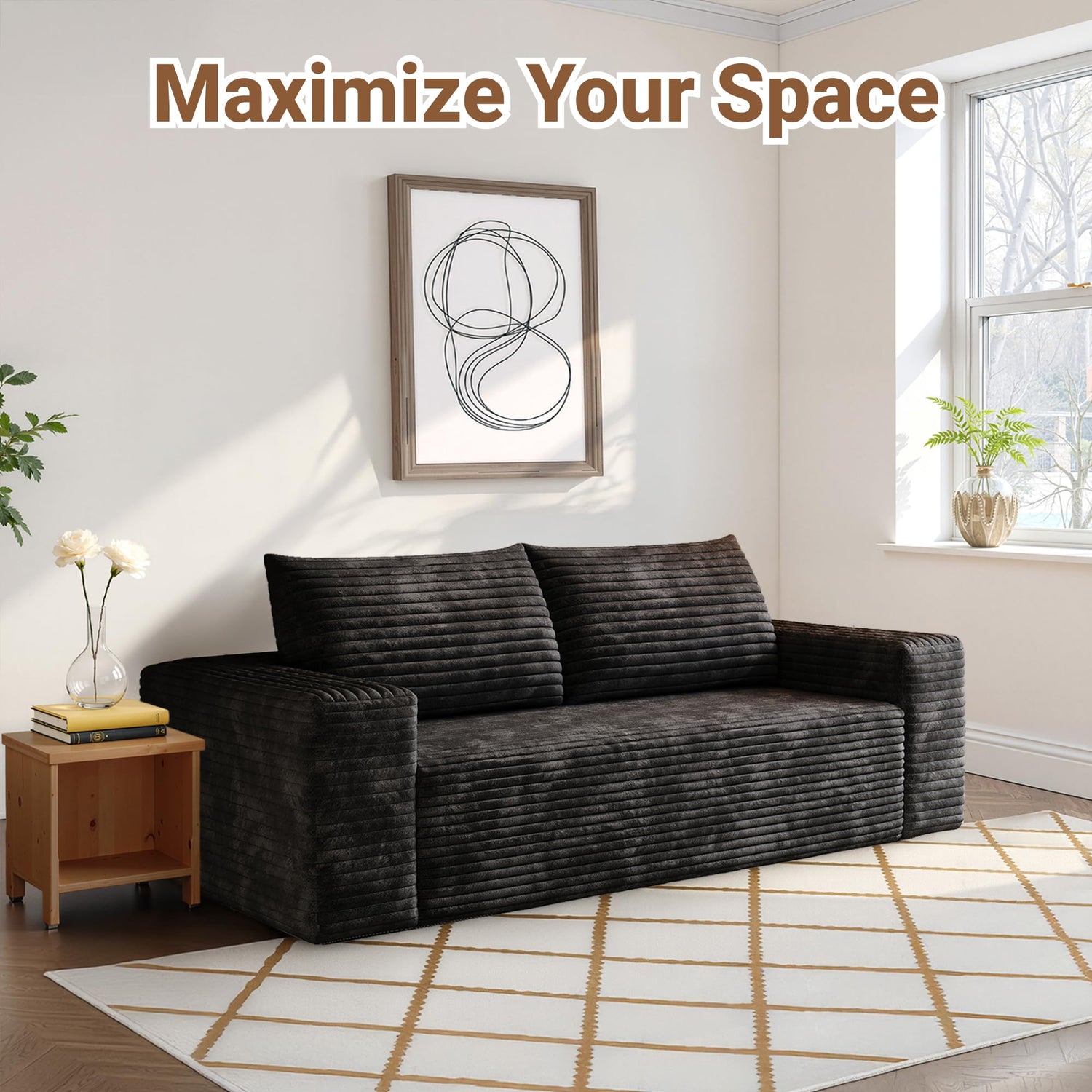 63 Inch Loveseat Sofa - Boneless Couch Plush Corduroy Upholstery, No Assembly Needed, Ultra Comfy for Small Spaces, Living Room, Bedroom & Apartment