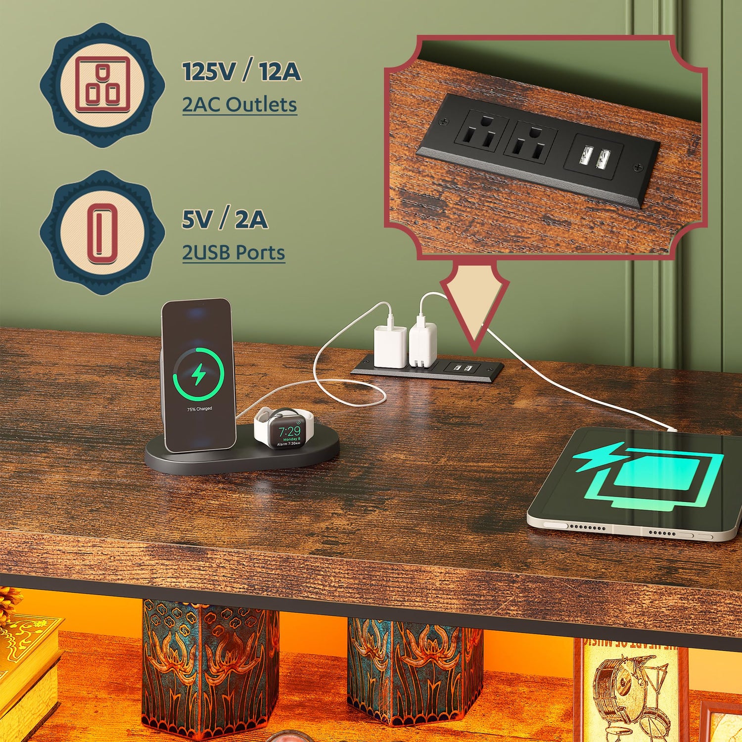 - Versatile Charging & Convenient Design:This TV stand dresser comes with 2 ports and 2 power outlets, serving as a practical charging station. The convenient plug - in options keep your devices powered up while you enjoy entertainment. As a family entertainment center, say goodbye to battery anxiety and fully immerse yourself in the joyous atmosphere.