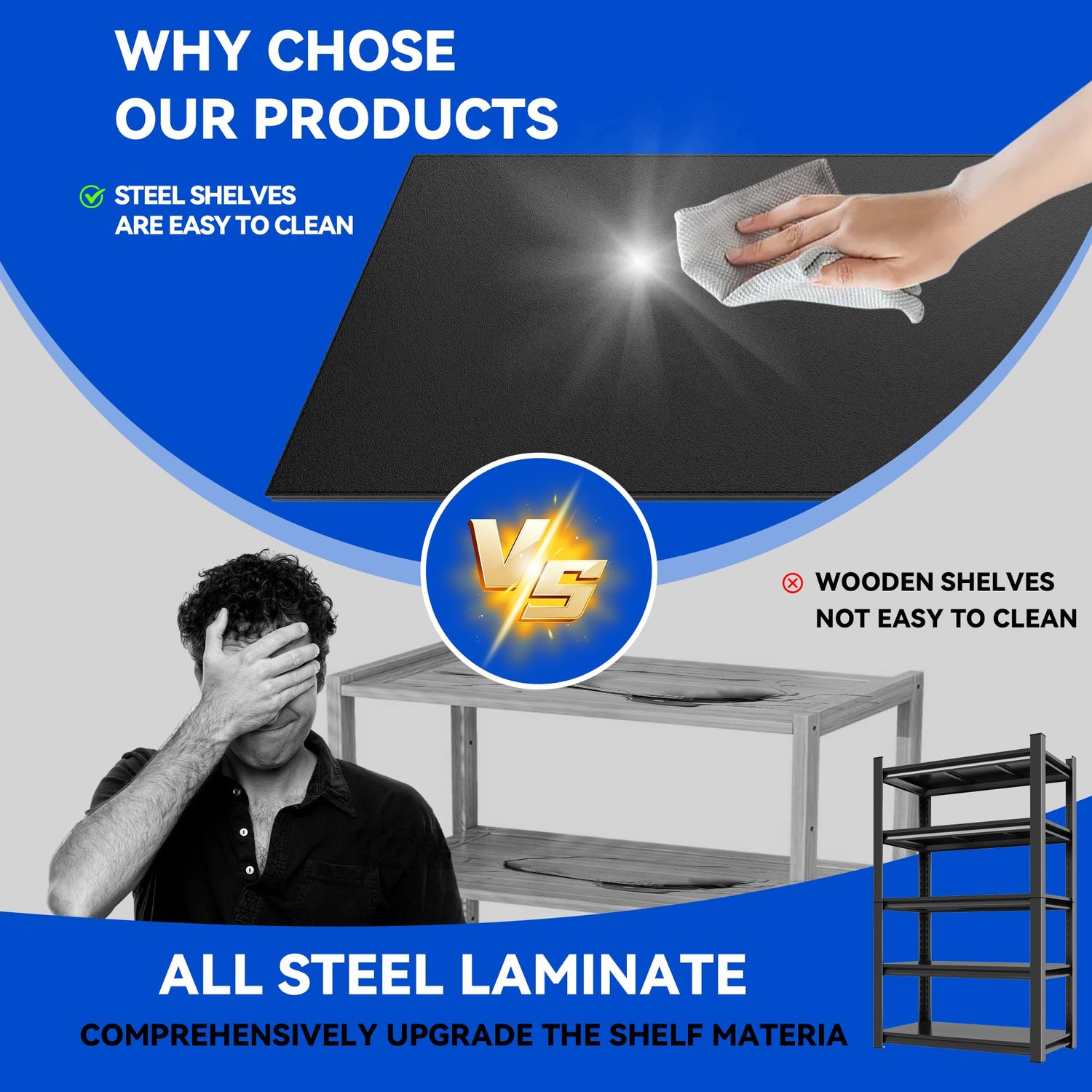 • 【HIGH QUALITY MATERIAL GUARANTEE】 The shelves are made of high-quality metal with powder coated surface, which has excellent anti-rust performance. The specially treated rust-resistant coating allows the shelf to remain shiny and new in humid environments. This moisture- and rust-resistant, scratch-resistant metal shelf will maintain its superior durability and reliability for years to come, and all you need to do is wipe it down with a dry or damp cloth to make it look brand new.