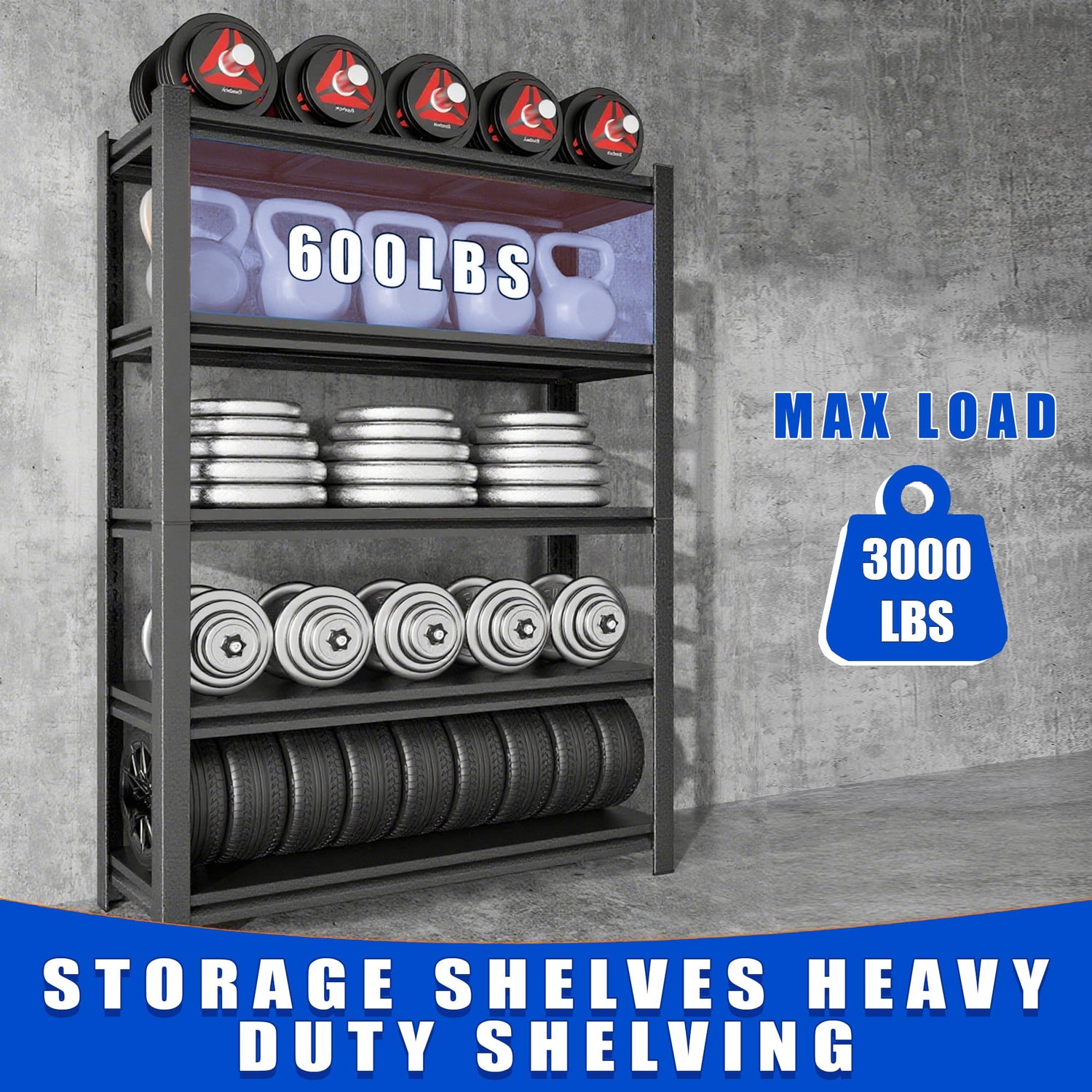 • 【EXCELLENT DESIGN, STRONG AND DURABLE】Our versatile heavy duty metal storage shelf, measuring 63 inches high, 23.6 inches wide, and 13.8 inches deep, is crafted from sturdy metal. Whether it's for your garage, basement, or workshop, it's a great choice for storing tools, equipment, and all types of heavy-duty items, and will provide exceptional strength and stability for your garage storage needs.