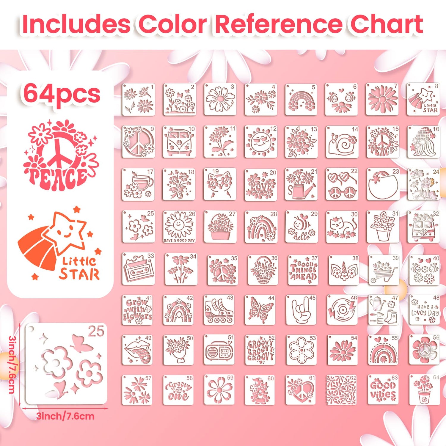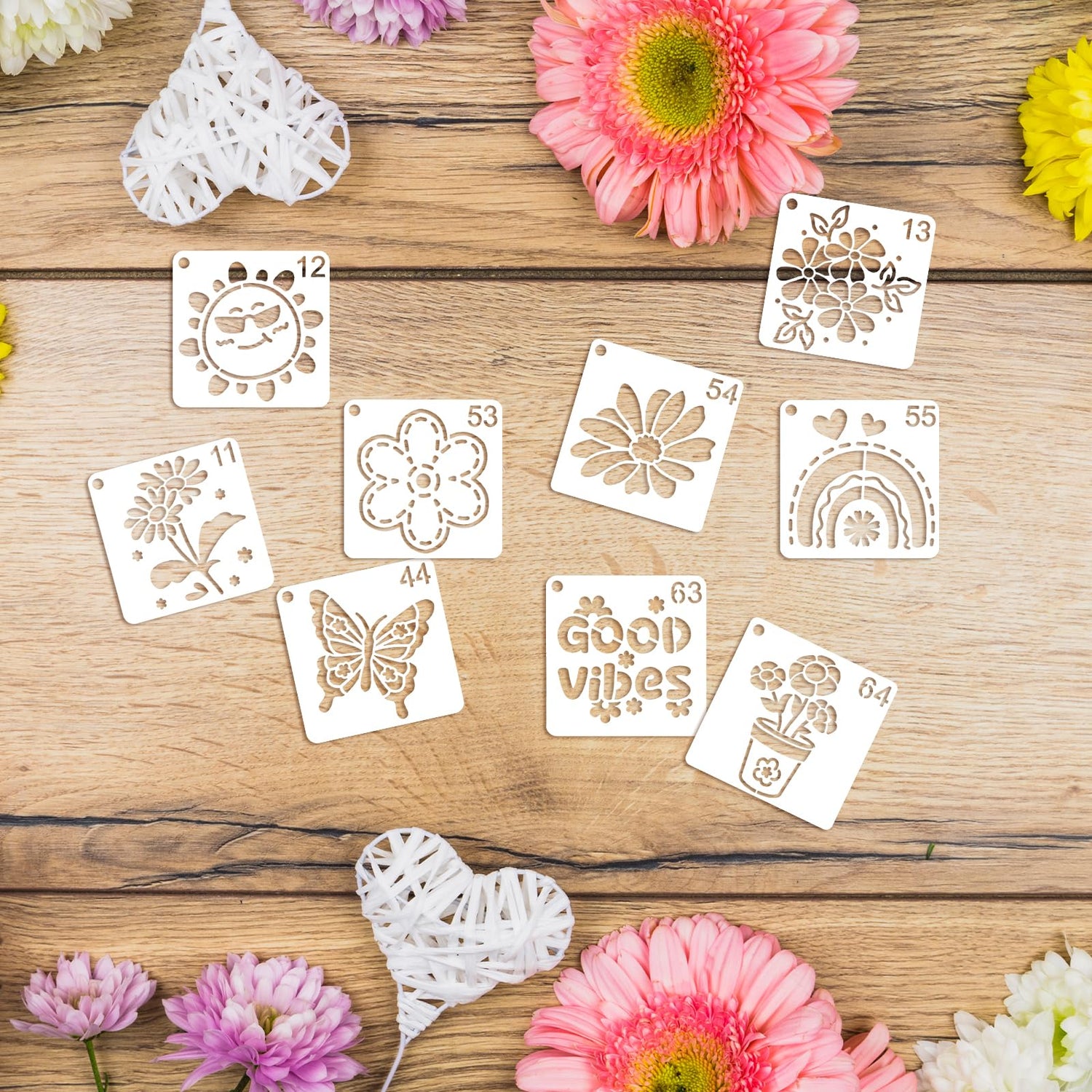 64 pcs Small Stencils for Crafts, Reusable 3 Inch Stencils, Including Flower Plant & Butterfly Patterns, DIY Craft Paint Great Templates for Painting on Wood, Fabric, Wall, Rock & Home Decor