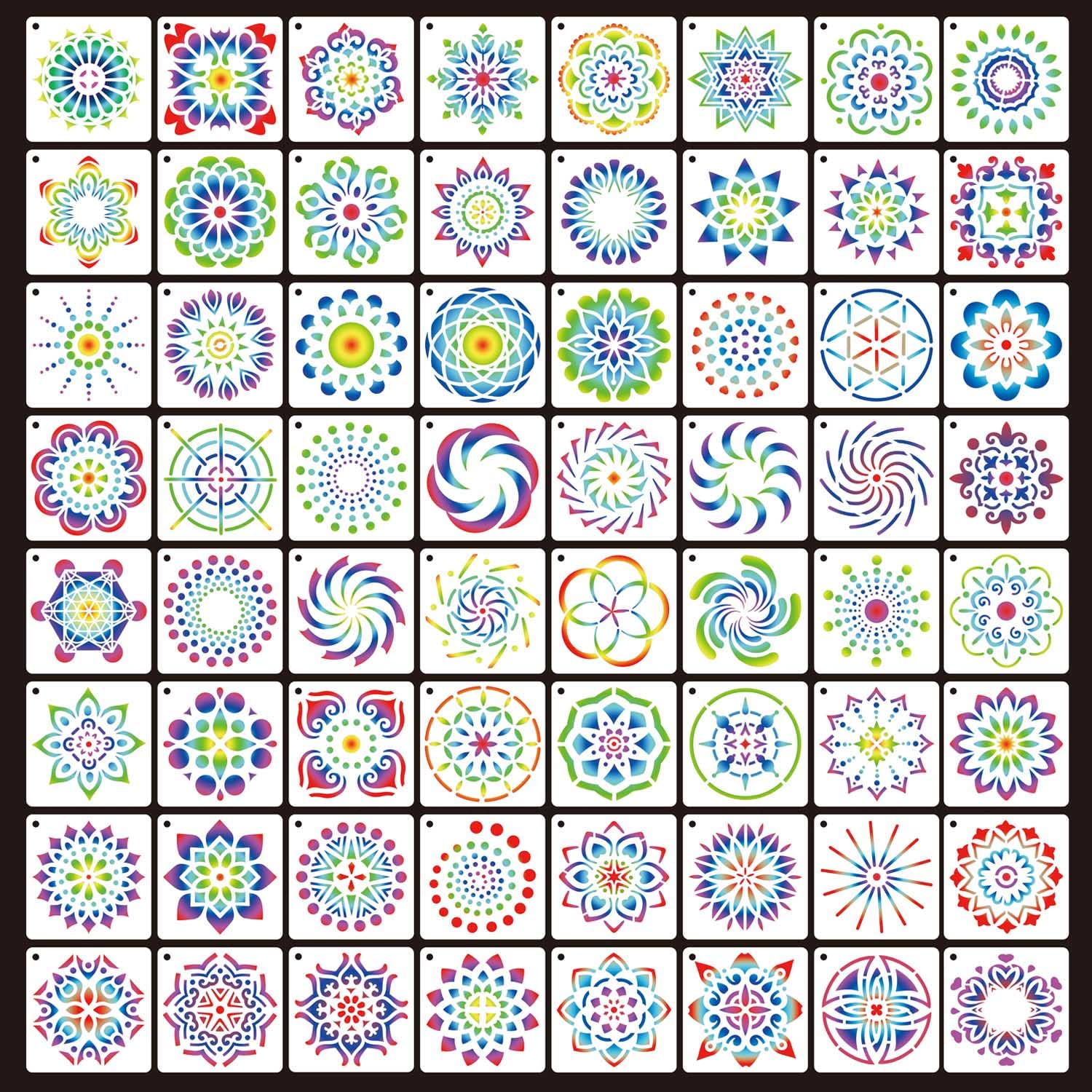 - 【Vivid Set】: The set contains 64 pieces of stencils for painting in 64 different Mandala styles, plenty in quantity, rich in style, a variety of different patterns allow you to give full play to your imagination, providing you with unlimited possibilities to create a variety of DIY art projects and enjoy the fun of creation.