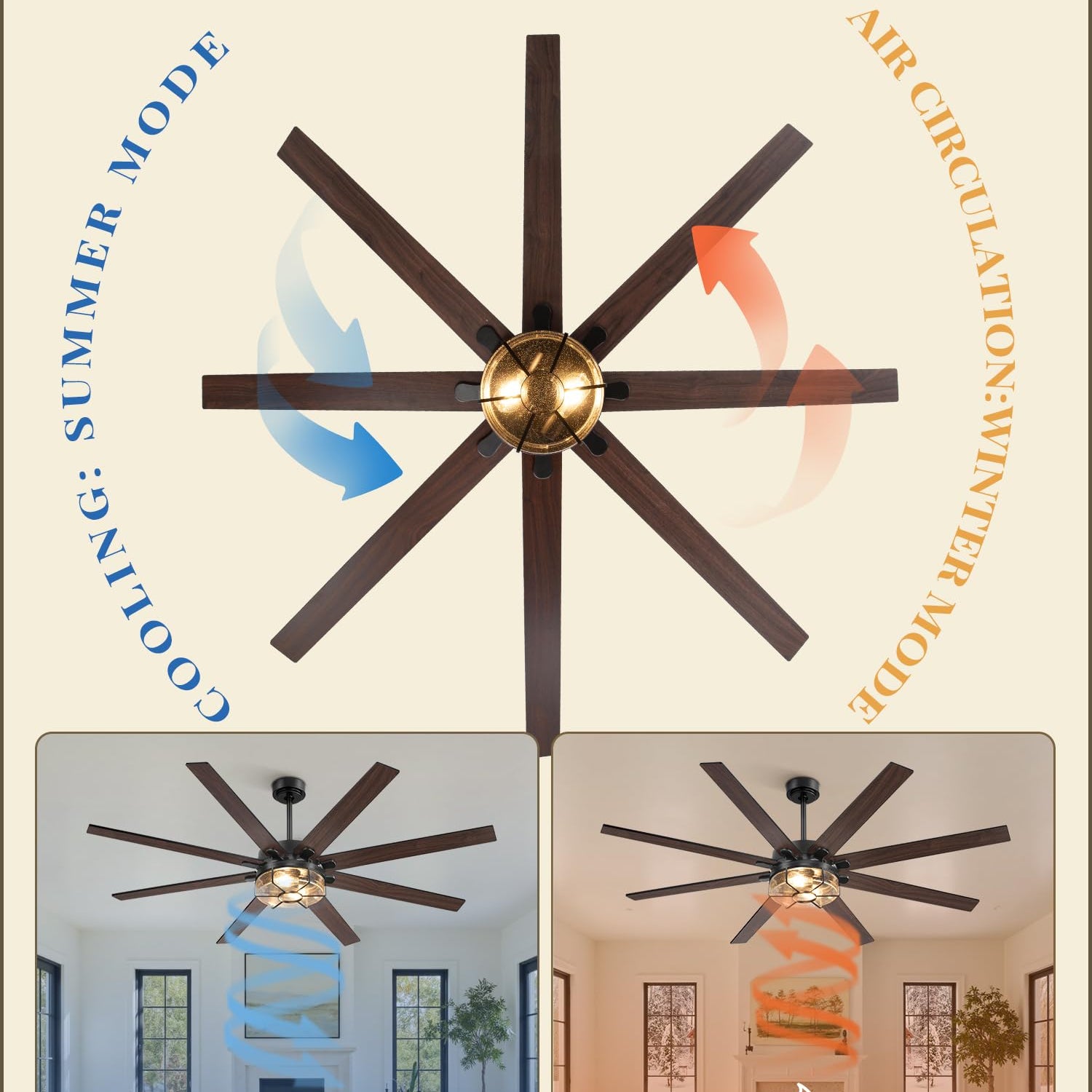- Energy-efficient and reversible motor: DC motor is more efficient and energy-saving than AC motor. 8 reversible blades enhance air circulation, bringing coolness in summer and retaining warmth in winter. This living room chandelier ceiling fan is your ideal choice for year-round comfort in any season.