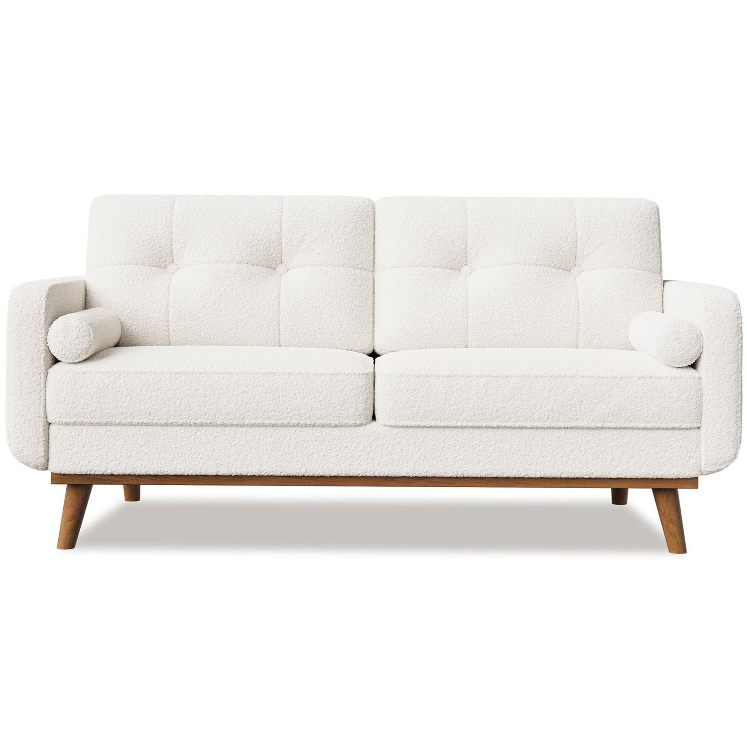 - 【Mid Century Modern Loveseat】 This stylish loveseat features a beautiful blend of mid-century modern design, comfortable teddy fleece boucle upholstery, and a robust wood frame. Its perfect combination of contemporary craftsmanship and classic aesthetics gives your living space a unique flair.