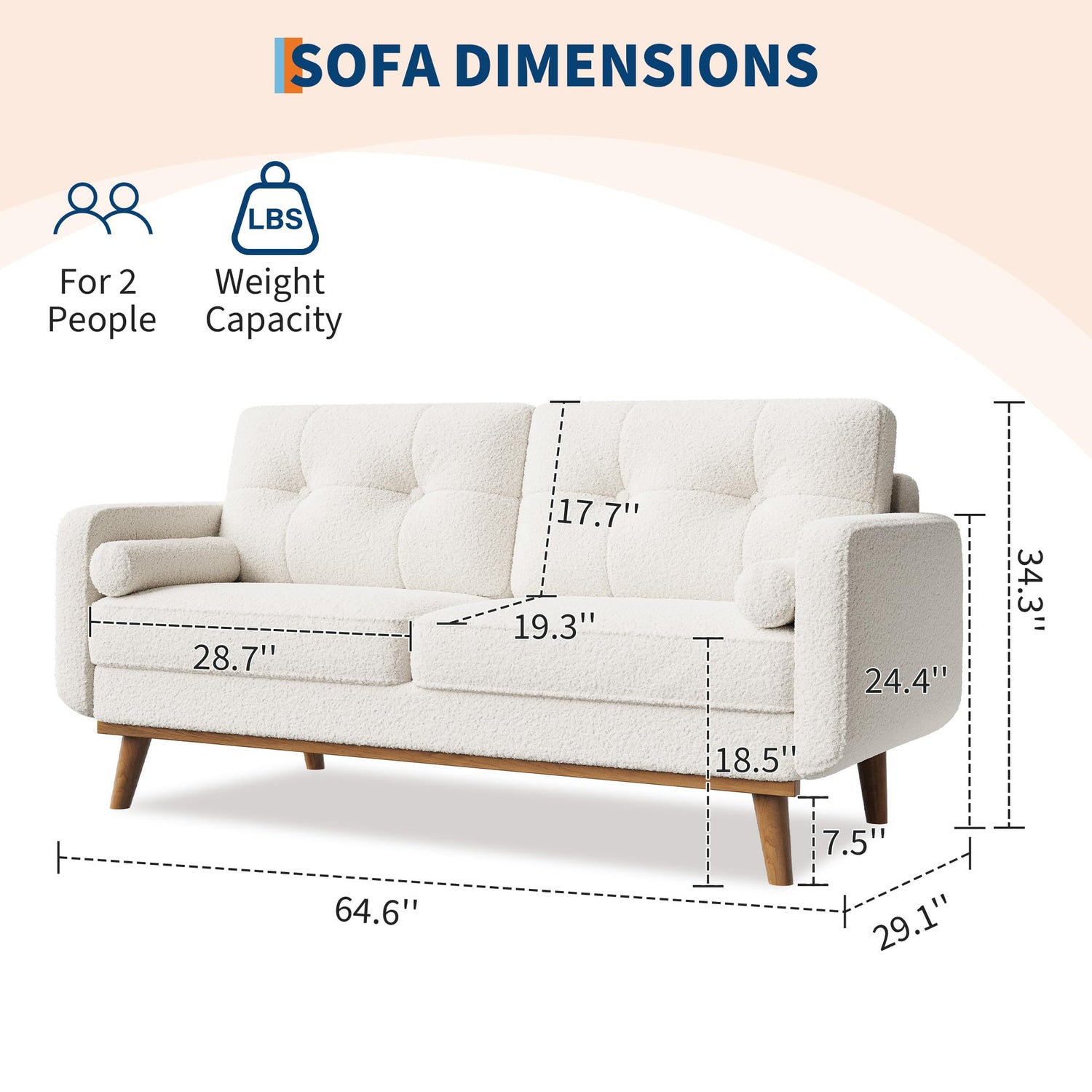 【Exceptional Comfort】 Measuring 65 inches wide, this loveseat is designed to comfortably seat 2 to 3 people. The thick spring foam cushions, covered in breathable teddy fleece boucle fabric, provide a soft yet supportive seating experience. With a generous 19.3-inch deep seat cushion, you can relax in comfort while maintaining good posture.