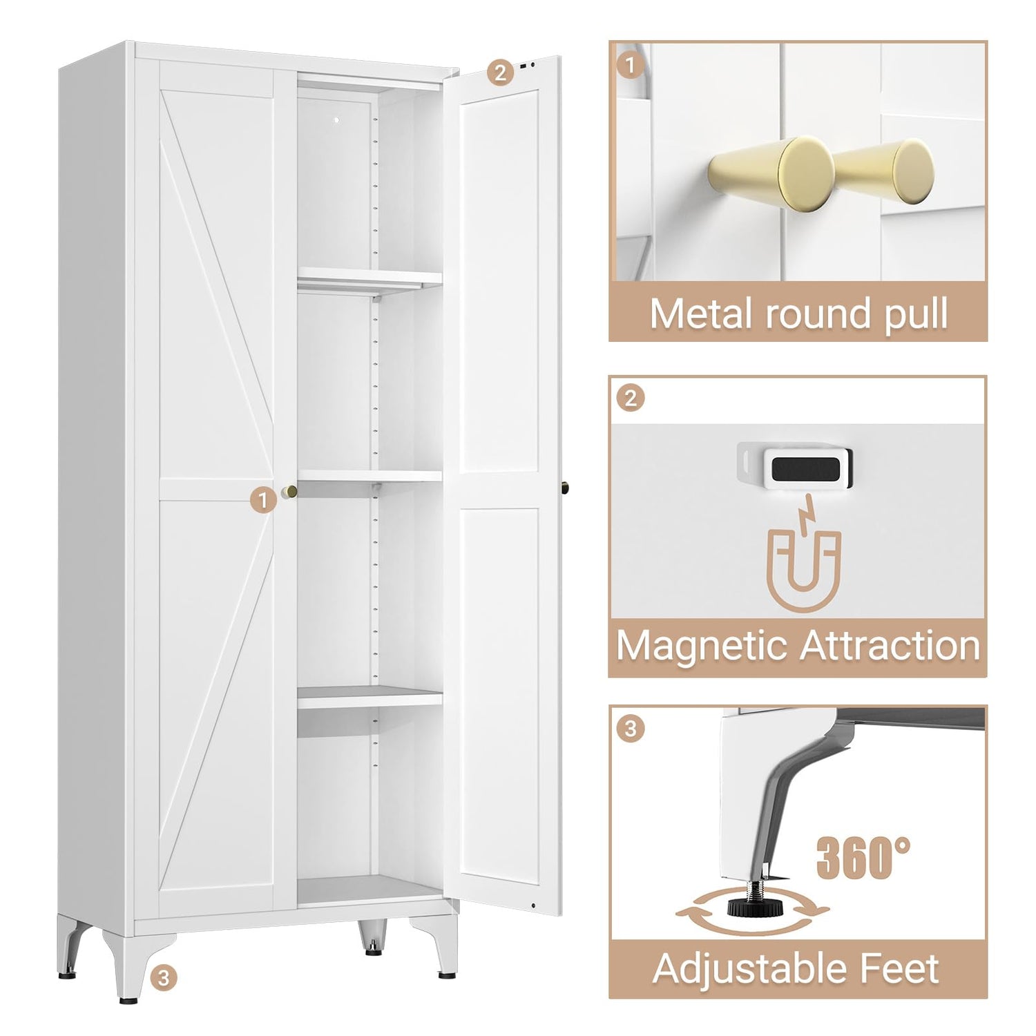65" Tall Kitchen Cabinet,Food Pantry Cabinets with Doors and Adjustable Shelves,White Metal Storage Cabinets,Large and Portable Arganization Cabinet for Pantries Kitchen Living Room Bathroom