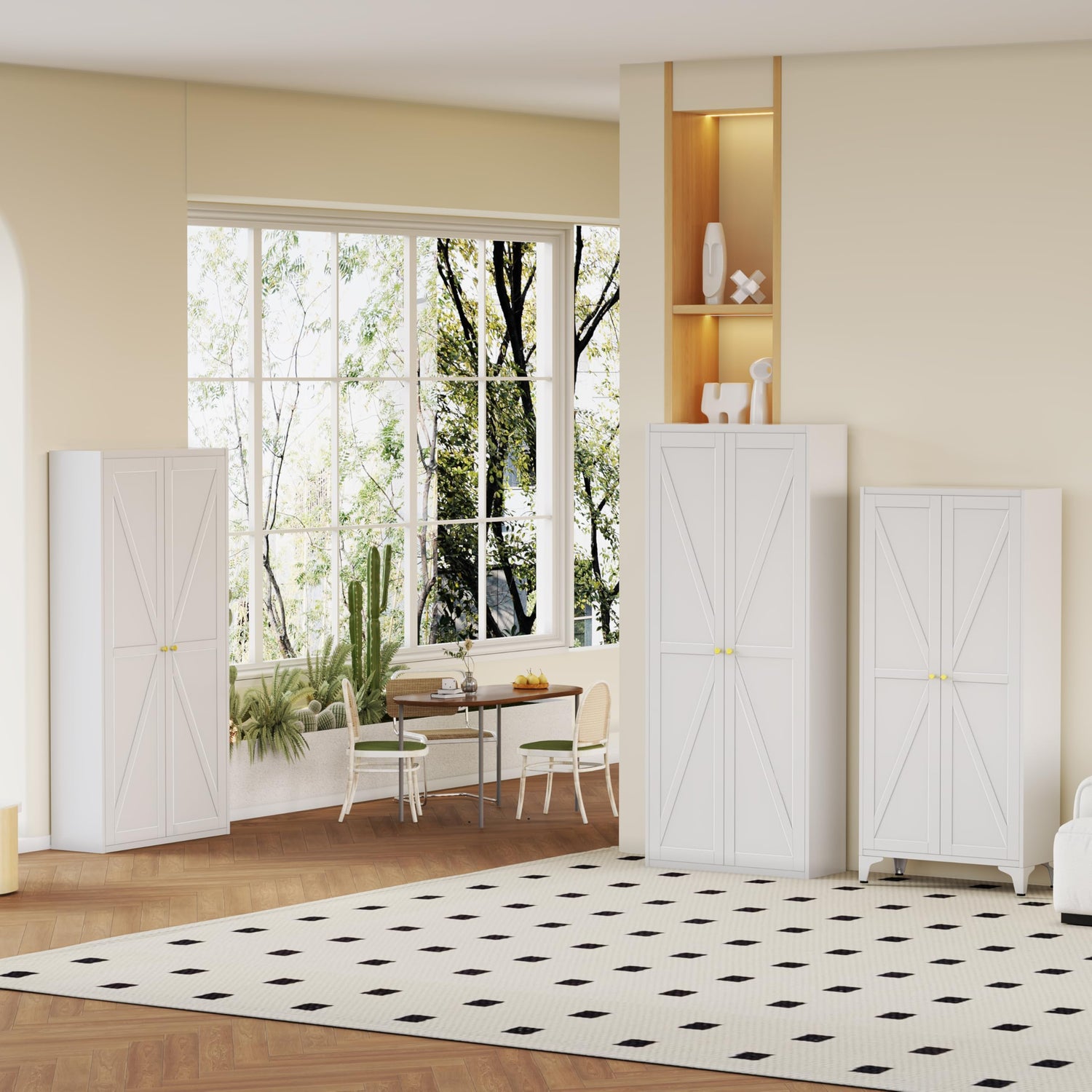 - 【Large Capacity Tall Pantry Cabinet】This White Kitchen Cabinets is equipped with 4 adjustable shelves, which can be freely disassembled or reorganized according to the height of the stored items, and flexibly adapt to different storage needs. It can store various small foods and dry goods, and can also easily accommodate large kitchen utensils, meeting the diverse storage needs of the kitchen. It is an ideal choice for kitchen and food storage room organizers.
