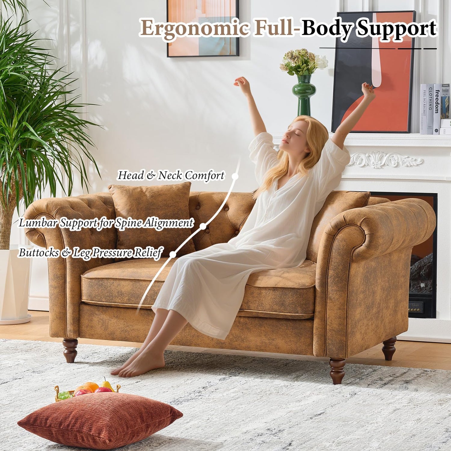 - Luxurious Comfort in a Compact 2-Seater Chesterfield Sofa – This upholstered loveseat features plush high-density foam with spring padding for cloud-like comfort and long-lasting support. Perfect as a small sofa couch for living room, office, or apartment, blending elegance and function.