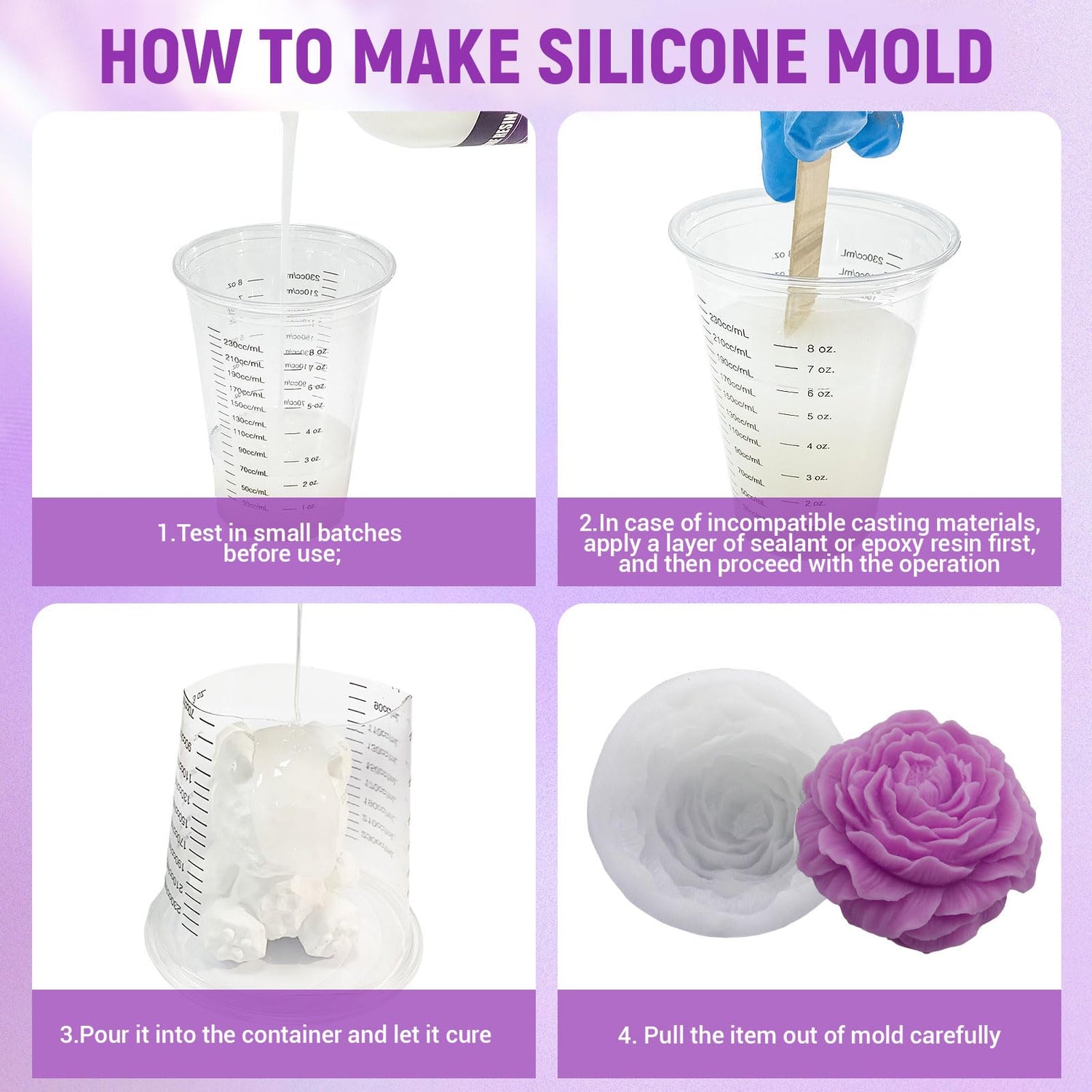 - 【Translucent & Flexible Mold Material】 The translucent nature of the platinum silicone rubber allows easy detection of air bubbles during the silicone mold making process. Once cured, the mold offers excellent flexibility and detail capture, ensuring professional-quality silicone rubber molds every time.