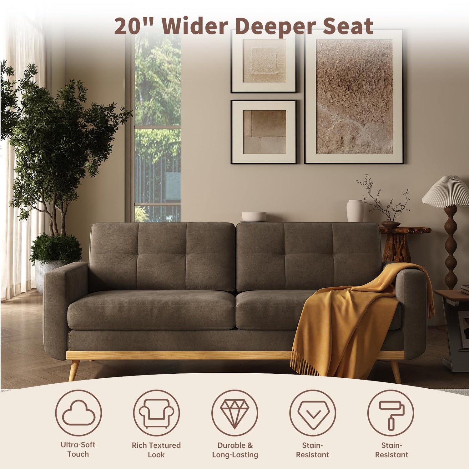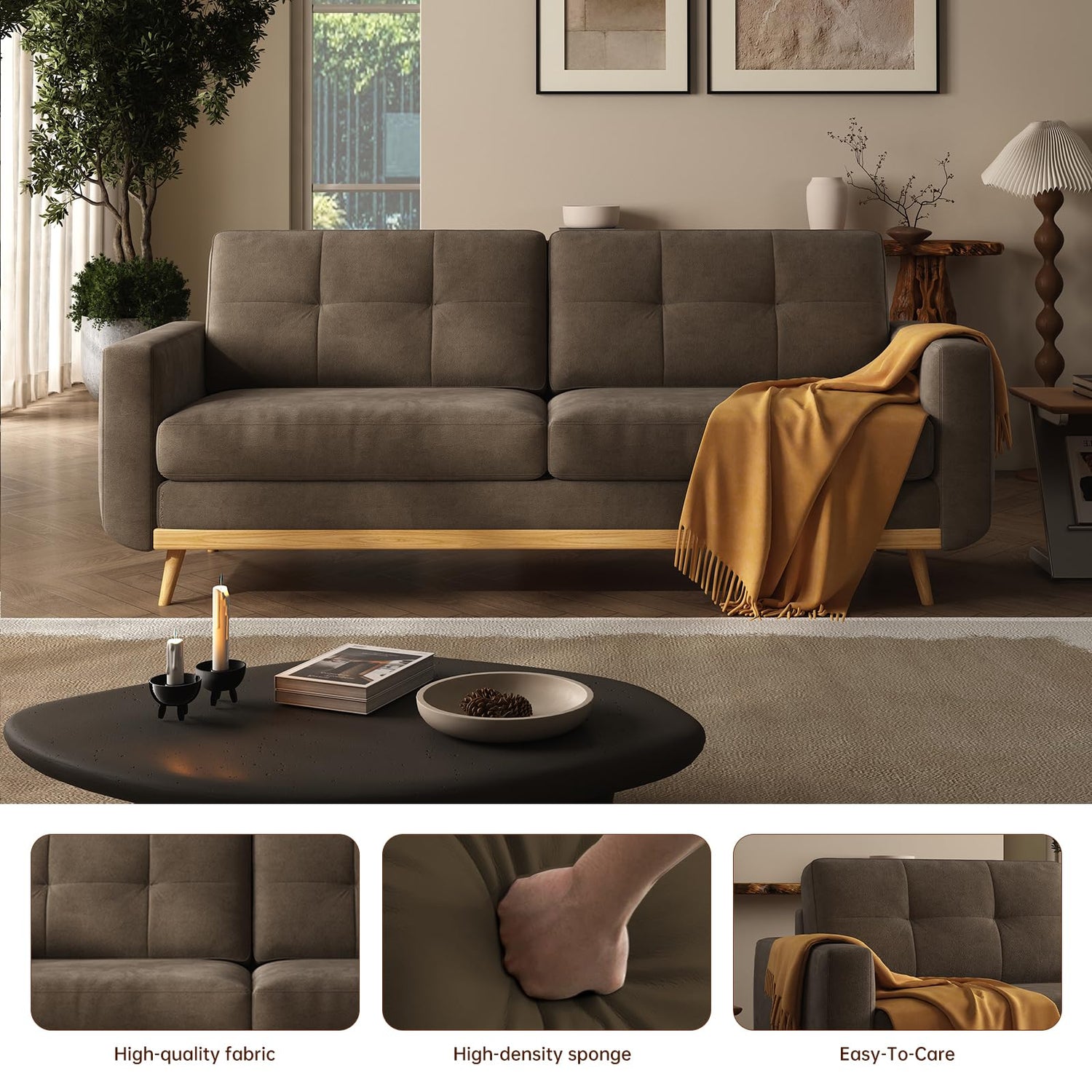 67.7” Loveseat Sofa, Mid Century Modern Decor Love Seat Couches for Living Room, Button Tufted Upholstered Small Couch for Bedroom, Solid and Easy to Install Love Seats Furniture (Brown, 67.7inch)