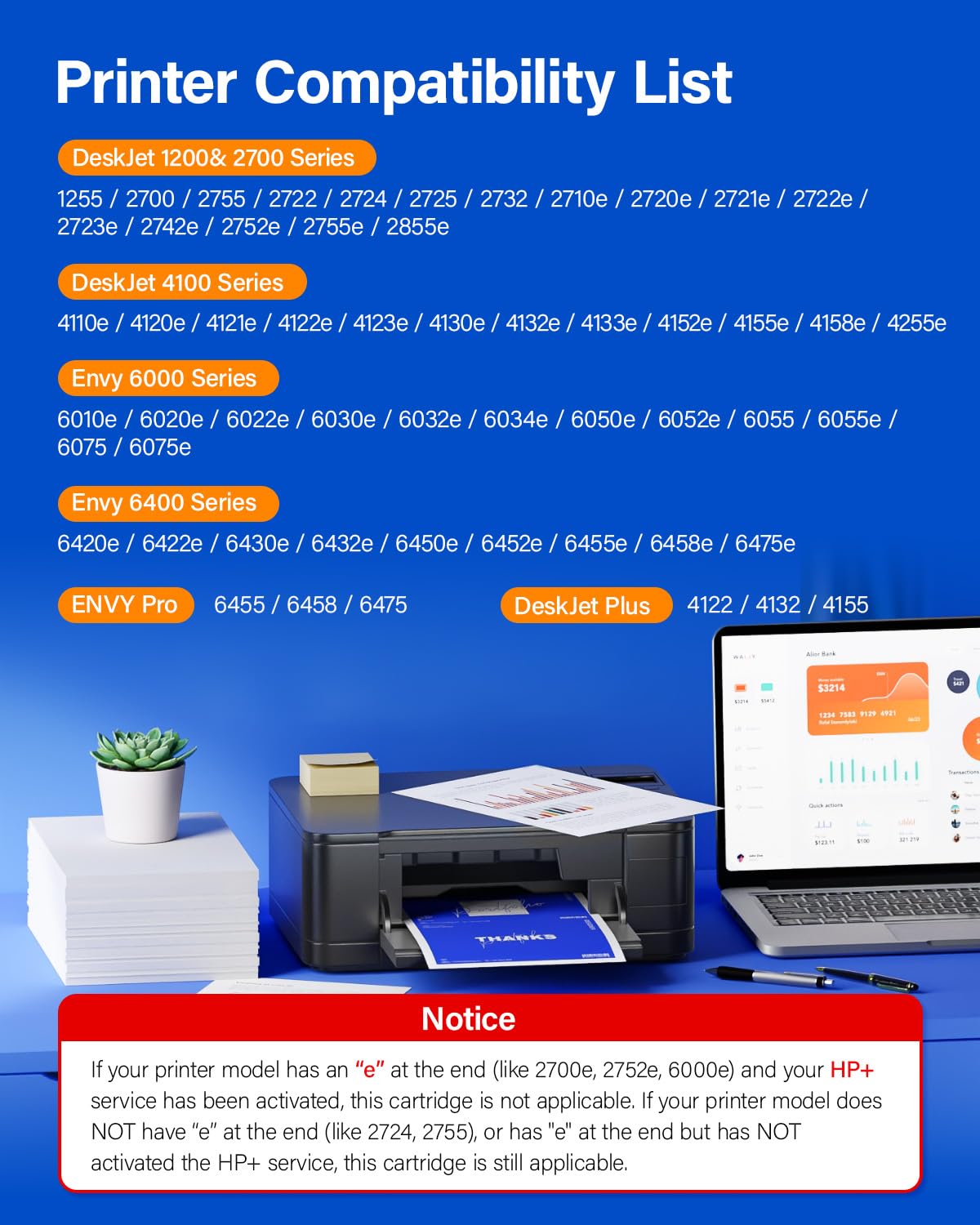 - Compatible with HP Device: DeskJet Series - 1255, 2700, 2755, 2722, 2724, 2725, 2732 2710e, 2720e, 2721e, 2722e, 2723e, 2742e, 2752e, 2755e, 2855e, 4110e, 4120e, 4121e, 4122e, 4123e, 4130e, 4132e, 4133e, 4152e, 4155e, 4158e, 4255e; DeskJet Plus: 4122, 4132, 4155