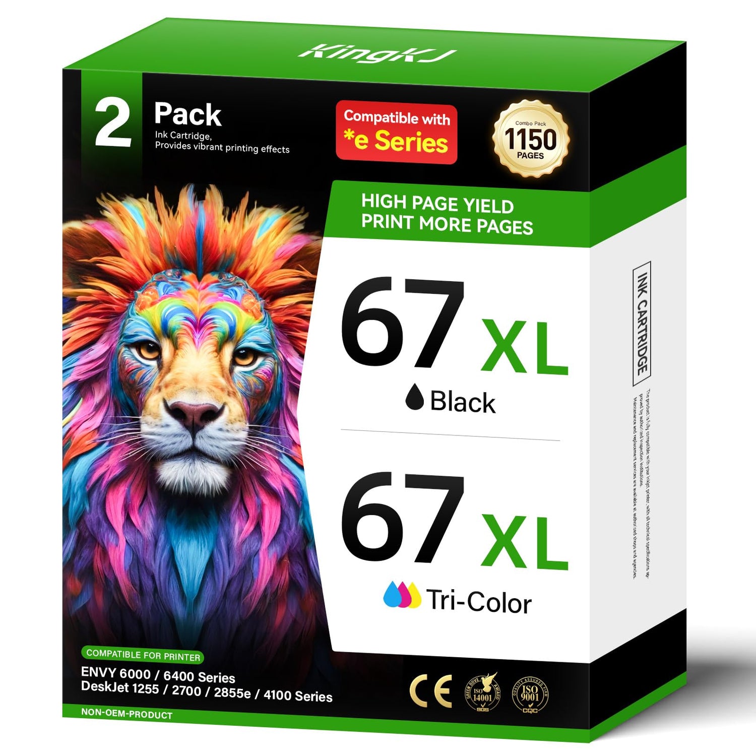 - 67XL Black/Color Combo Pack: Up to 4x more prints with KingKJ's higher yield 67XL Ink vs. OEM Ink