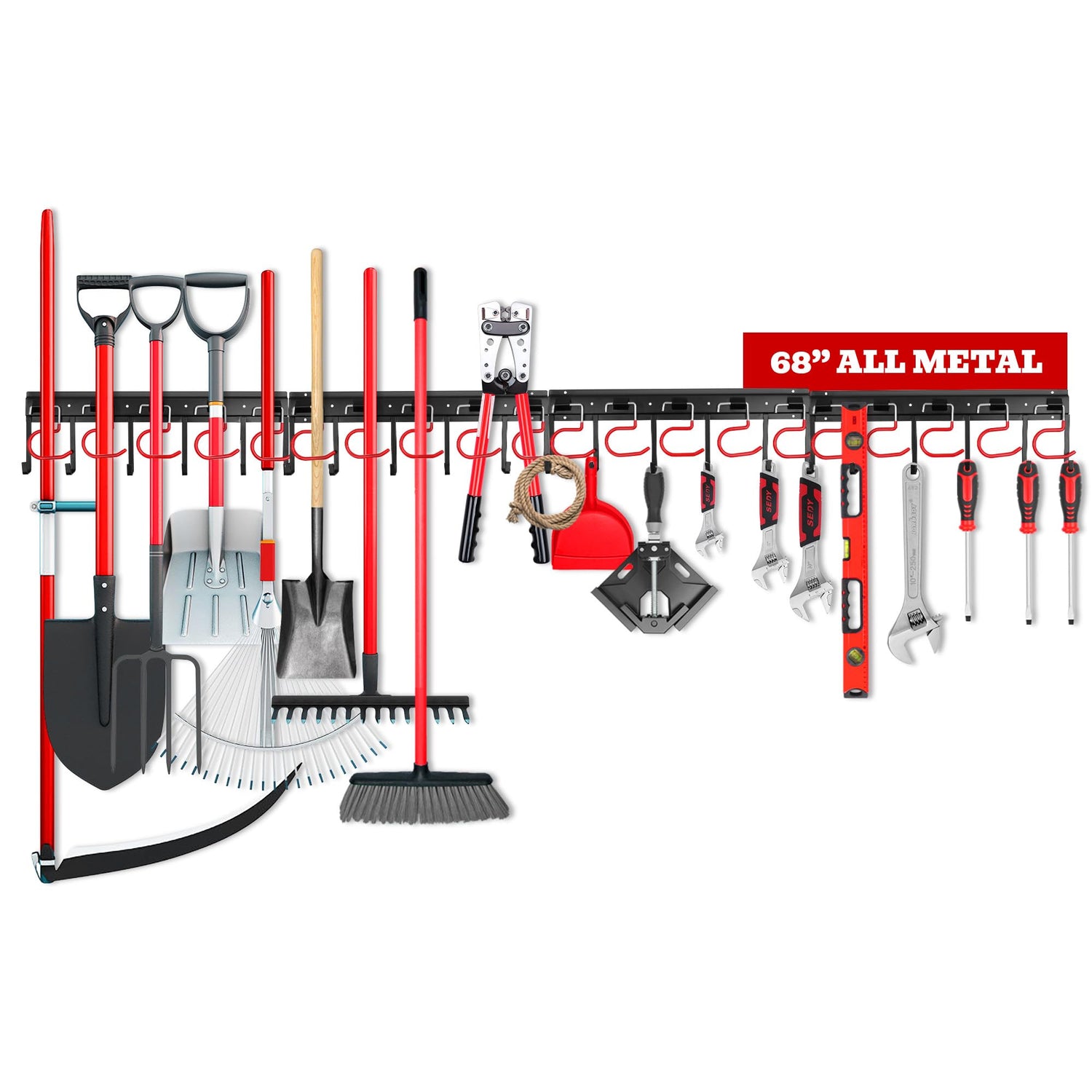 68" All Metal Garden Tool Organizer - Sturdy Garage Wall & Shed Organization System - Hooks for Shovel, Broom, Rake & More