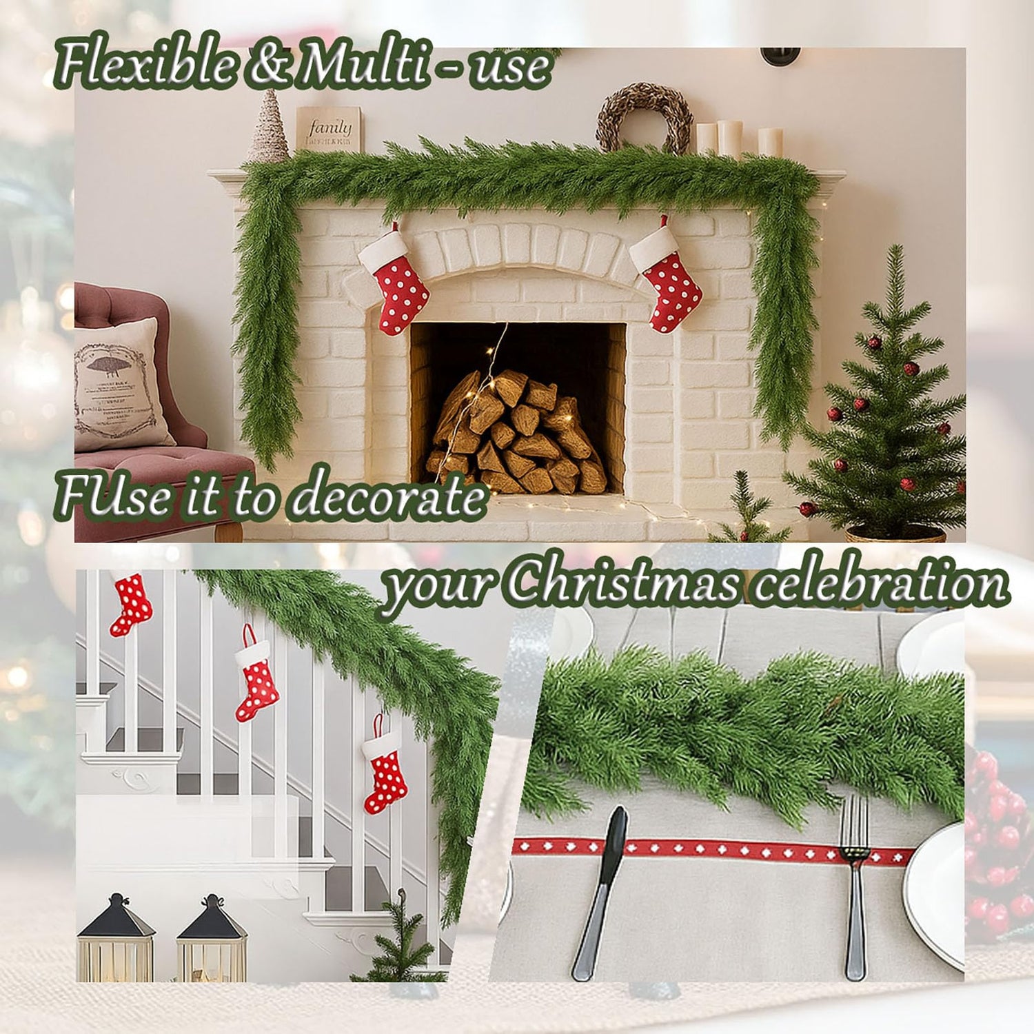 - 【Exceptionally Full & Plush Green Garland】Designed for a lavish display, this is no flimsy garland. It features a high density of soft needles and branches, giving it a premium thickness that makes it the perfect christmas decorations indoor centerpiece for your mantle, staircase, or doorway.