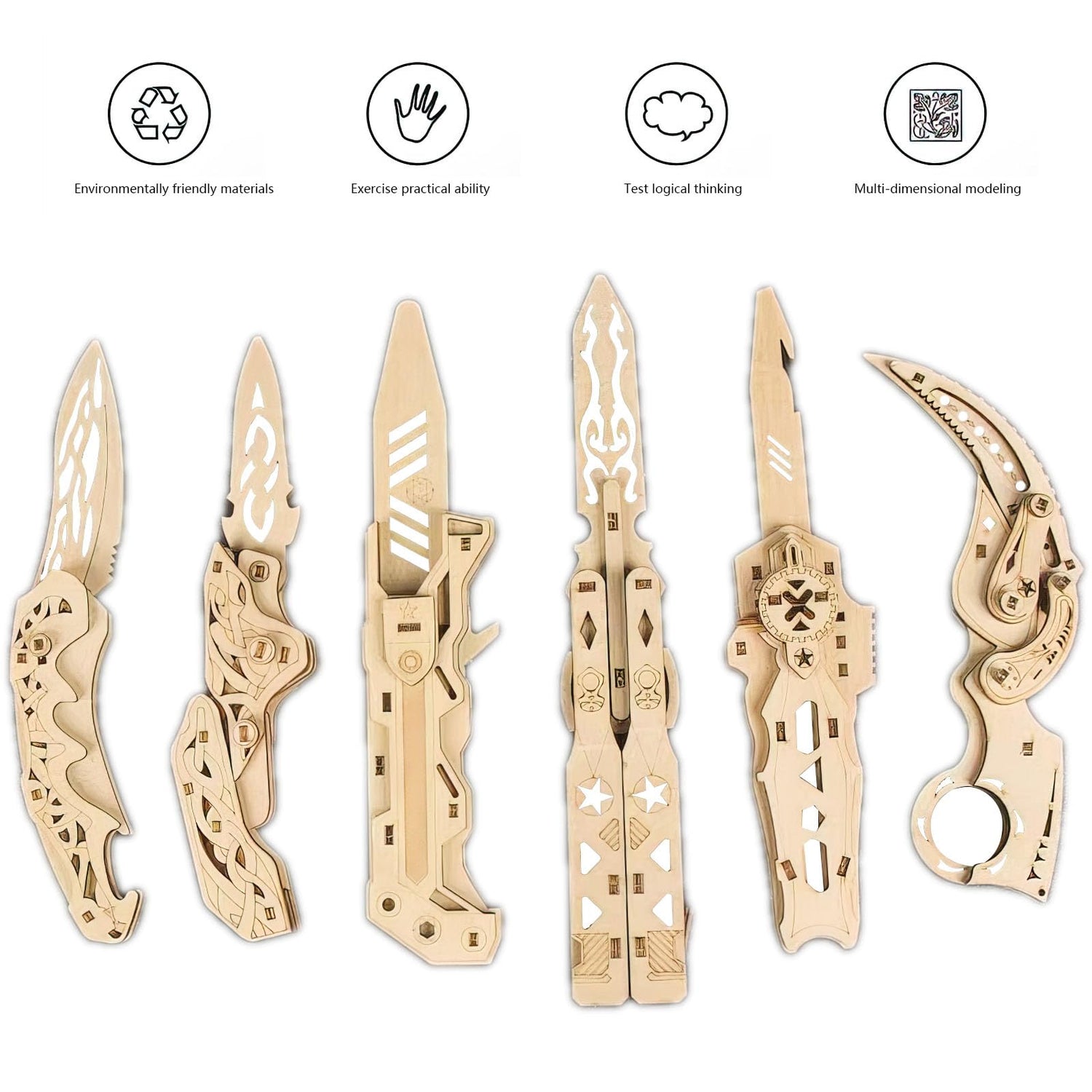 6Pc 3D Wooden Puzzle DIY Building Toys - Wooden Knife Mechanical Model - Multi-Player Game, for Boys, Girls, Teens, and Adults