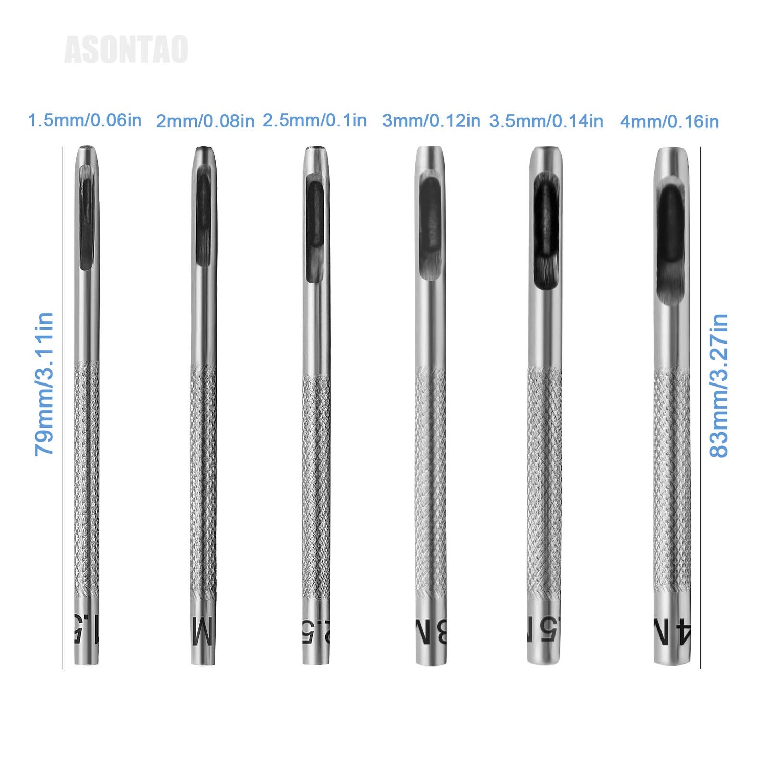 6PCS Hollow Leather Hole Punch Set (1.5mm-4mm) for Belts, Watch Bands, Leather Craft, Round Hole Punch Tool for Belt, DIY, Leatherworking, Repair Tools -ASONTAO