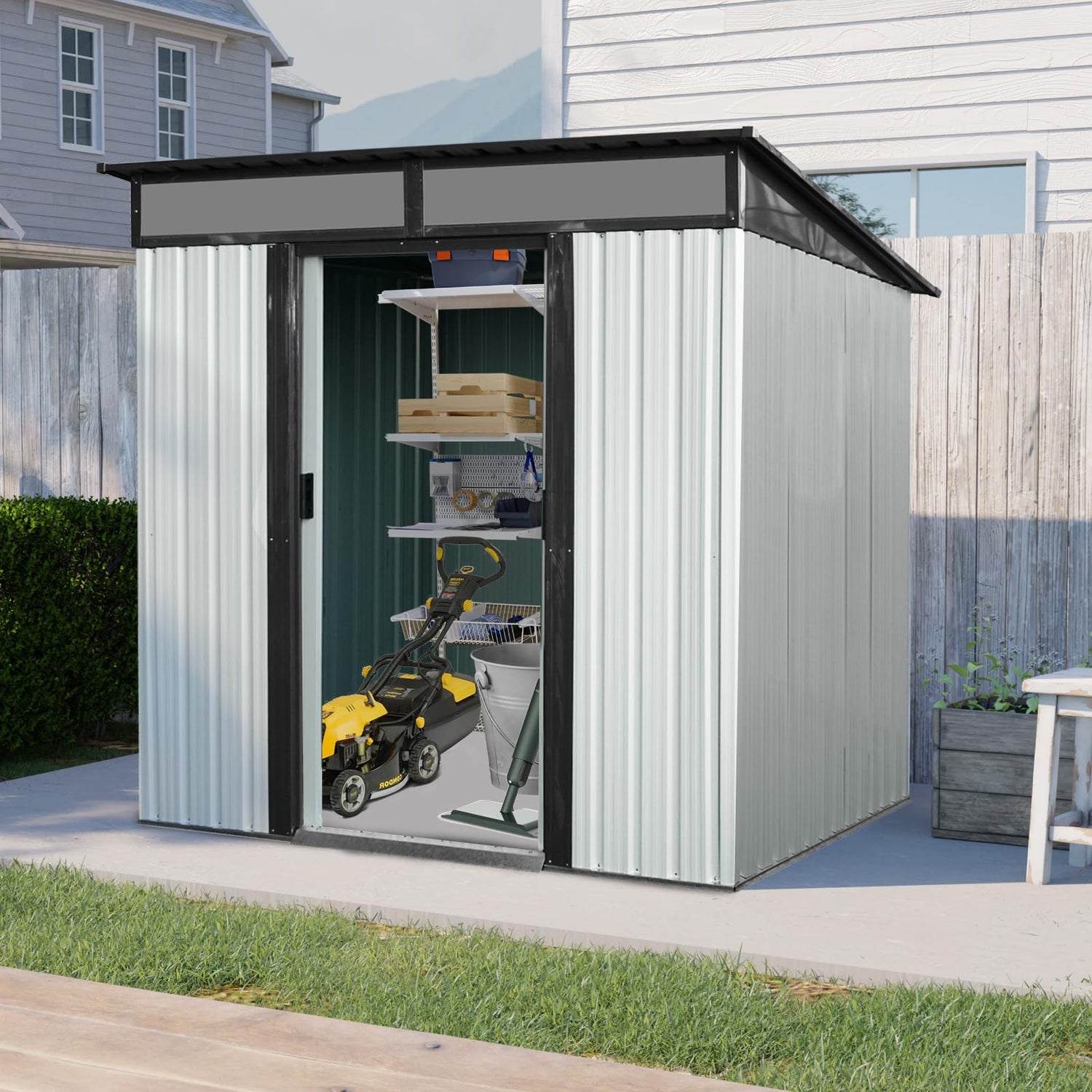6X5 FT Outdoor Storage Shed, Waterproof Metal Garden Sheds with Lockable Door, Steel Tool Storage Buildings Shed & Outdoor Storage House for Garden, Backyard, Patio, Lawn, Trash Cans(White + Black)