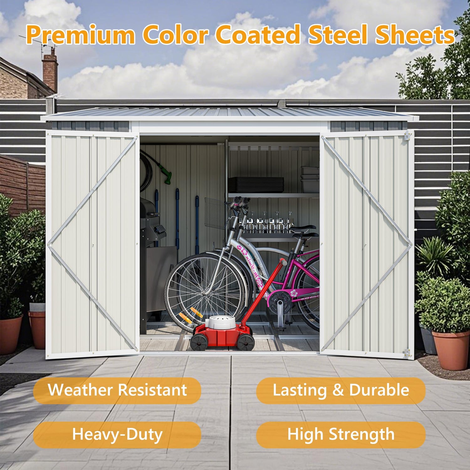 6x8FT Metal Outdoor Storage Shed with Floor Frame,Large Tool&Lawn Mower Shed with Two Lockable Doors for Garden Backyard Patio Storage,Outside Lean to Waterproof Storage Shed