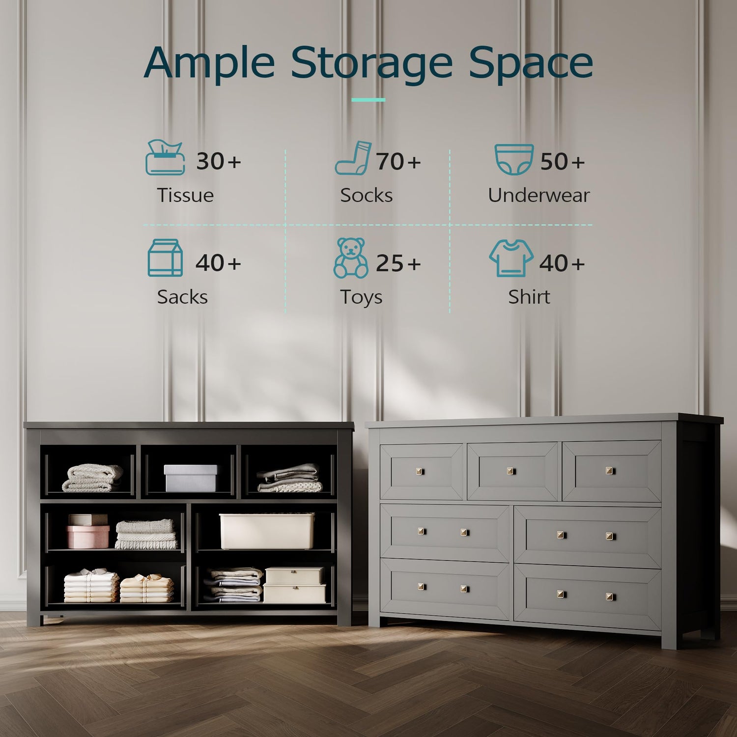 - 【Large Capacity & Multifunction】This storage chest provides you with 7 drawers, bringing plenty of space for all your clothes. It can be used as a makeup cabinet in the bedroom, a TV stand in the living room. Also, it can be put in any home corner such as the playroom, nurseries, hallway, entryway or kids' bedroom