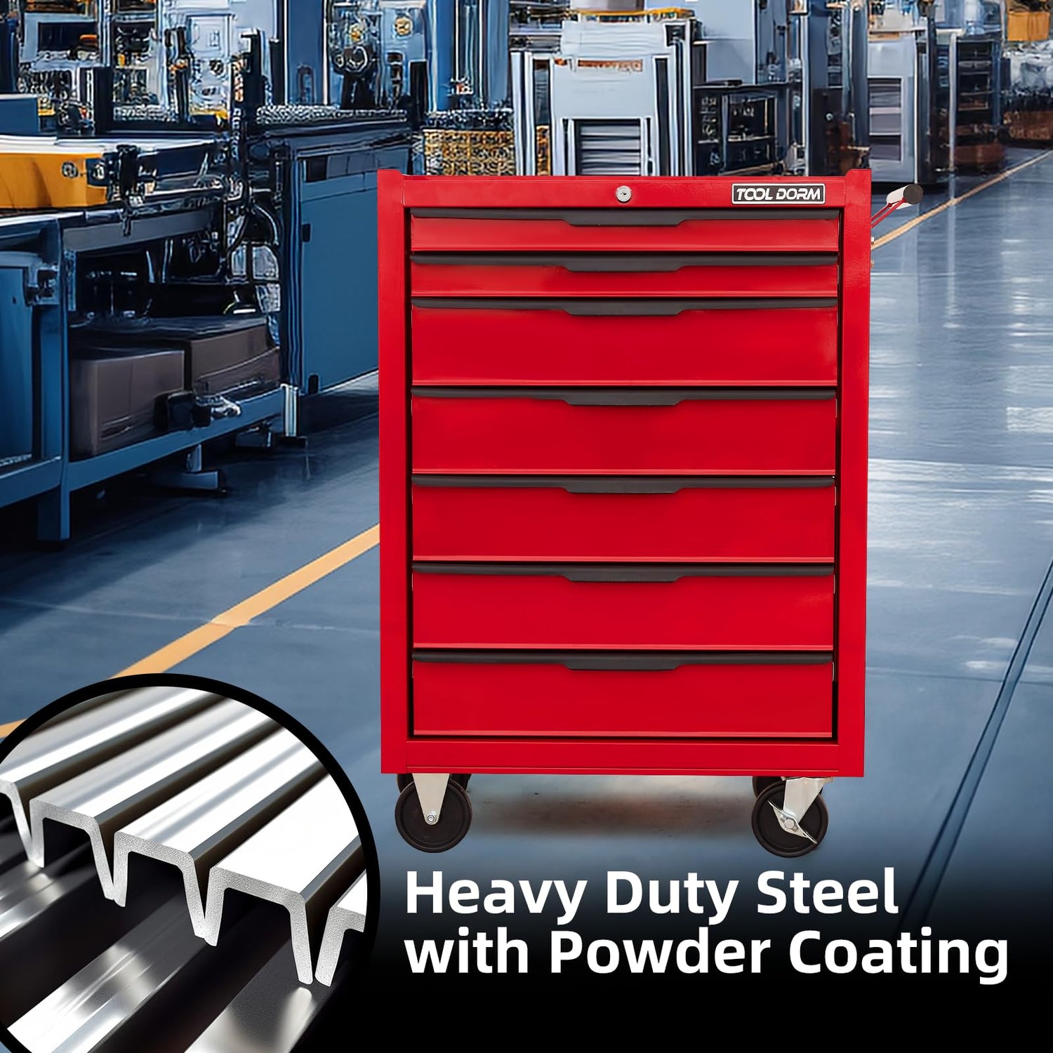 - Sturdy amd Durable: The rolling toolbox is made of Cold Rolled Steel construction is used for high wear resistance. The surface is treated with a red coating, which has excellent anti-rust and anti-corrosion ability.