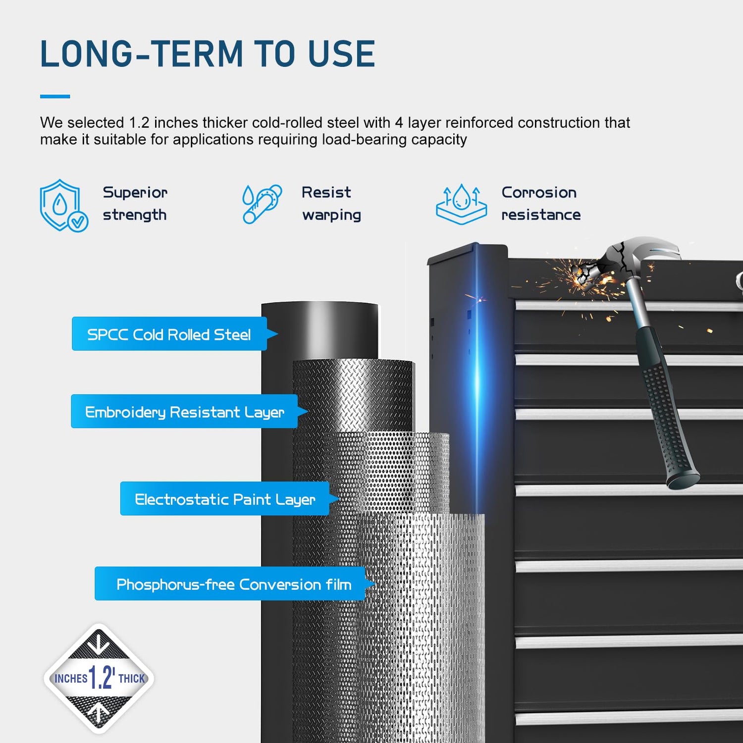 - Heavy-Duty Metal Construction: Constructed from durable metal, CMFYDAILY tool chest is built to withstand tough working conditions in garages, workshops, and home repair settings, ensuring long-lasting durability and reliability.
